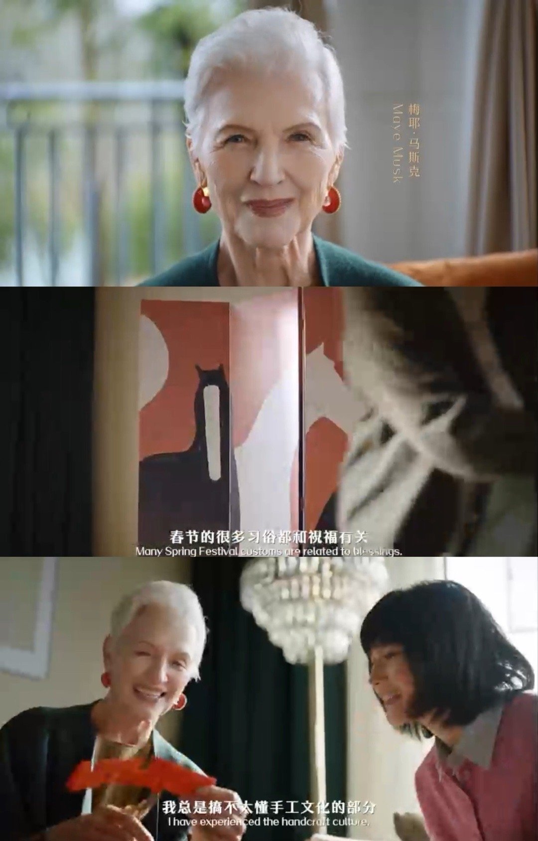 马斯克妈妈沉浸式体验中国年77岁梅耶马斯克玩转中国年仪式感 77岁梅耶马斯克沉浸式解锁中国年✨ 贴窗花把“囍”字当春节装饰,包饺子学得有模有样,从传统手工到年味仪式感,跨文化碰撞出满满烟火气,优雅奶奶把中国年玩出了新可爱!