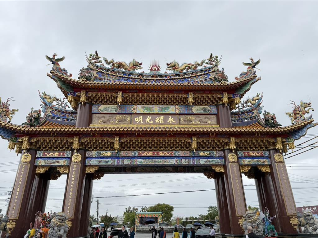 斥资五千万!阿莲北极殿迎神楼圆满落成并举行揭匾仪式,梁柱对联暗含深意。 拥有逾350年悠久历史的高雄阿莲区土库北极殿,于6日盛大举办了全新牌楼“迎神楼”的落成揭匾与开光大典。据设计团队御盟集团总裁邵永添介绍,这座耗资超过5000万元的牌楼,历经5年精心筹建,现已成为阿莲区的新标志性建筑。高雄市长陈其迈亲临揭匾现场,对北极殿在地方文化传承方面的努力给予高度评价,并祈愿神明庇佑高雄市风调雨顺、繁荣昌盛。