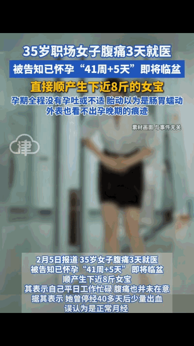 “心真大!”35岁女子腹痛3天以为吃坏肚子,医生一查却要生了!娃一称近8斤,胎动竟被当成“胀气”? 据媒体2月5日的报道,一位35岁的张女士,个典型的“拼命三娘”。平日里工作忙碌,生活节奏像上了发条一样紧凑。为了事业,她常常在写字楼里一坐就是一天,连喝水的时间都恨不得挤出来。这种高强度的生活状态,让她对身体发出的细微信号变得极其迟钝。 2月5日上午,张女士的腹痛已经持续了整整三天,起初只是腹部隐隐作痛,她翻出家里常备的肠胃药吃了两片,又点了白粥外卖,想着忍一忍就能缓解。她坐在工位上处理项目方案时,腹部时不时传来一阵紧绷的蠕动感,她下意识揉了揉肚子,心里只当是久坐不动导致的胀气,还跟对接工作的同事吐槽,说自己最近总吃外卖,肠胃功能都变差了。作为电商公司的运营主管,她手里攥着春节后的促销项目,每天要盯数据、开会议,连午休都在回复客户消息,根本没心思深究身体的异样,就连近两个月没来月经,她也归因为工作压力大引发的内分泌紊乱,完全没往怀孕的方向想。 当天下午,腹痛突然急剧加重,疼得她直冒冷汗,双手撑着桌面都站不稳,同事见状赶紧扶着她打车去了附近的医院。急诊医生听完她“腹痛、胀气”的描述,先安排了腹部超声检查,检查结果出来的瞬间,医生都有些意外,屏幕上清晰显示着足月胎儿的影像,宫口已经开到三指,孩子随时可能出生。张女士听到医生的话,整个人僵在原地,反复追问是不是检查出错了,她怎么也无法接受,自己以为的肠胃不适,竟然是宫缩和胎动。 医护人员立刻将她转入产房,全程不到一小时,孩子就顺利降生,称重显示7斤8两,新生儿评分满分,身体各项指标都很健康。张女士看着襁褓里的孩子,眼泪瞬间掉了下来,她这才回忆起,怀孕初期的轻微恶心,被她当成了慢性胃炎发作,体重涨了十二斤,她以为是久坐缺乏运动长的脂肪,就连胎动最频繁的那几天,她也只是觉得肚子里有气在窜,从未有过丝毫怀疑。 她的丈夫接到医院电话时,正在外地出差,连夜赶回来的路上,既觉得荒唐又满心后怕。接诊的妇产科医生表示,张女士的情况并非个例,很多职场女性因工作忙碌,加上高龄、月经周期不规律等因素,极易忽视怀孕的早期信号,将胎动误判为肠胃胀气、腹痛的案例每年都会遇到几例。医生特别提醒,成年女性要密切关注自身月经周期和身体变化,出现持续腹痛、腹部异常蠕动等情况,切勿自行判断用药,及时就医检查才是最稳妥的方式,高龄女性更要坚持定期体检,别让忙碌透支了健康。 这件事被媒体报道后,很快在社交平台引发热议,不少职场女性留言感同身受,说自己也常常因为工作忽略身体的小毛病,还有网友感慨,再拼事业也不能忽视身体发出的信号,健康才是一切的基础。张女士也坦言,这次经历给了她狠狠的提醒,往后会放慢工作节奏,多关注自己的身体,也希望用自己的经历提醒更多人,别让忙碌成为忽视健康的借口。 各位读者你们怎么看?欢迎在评论区讨论。