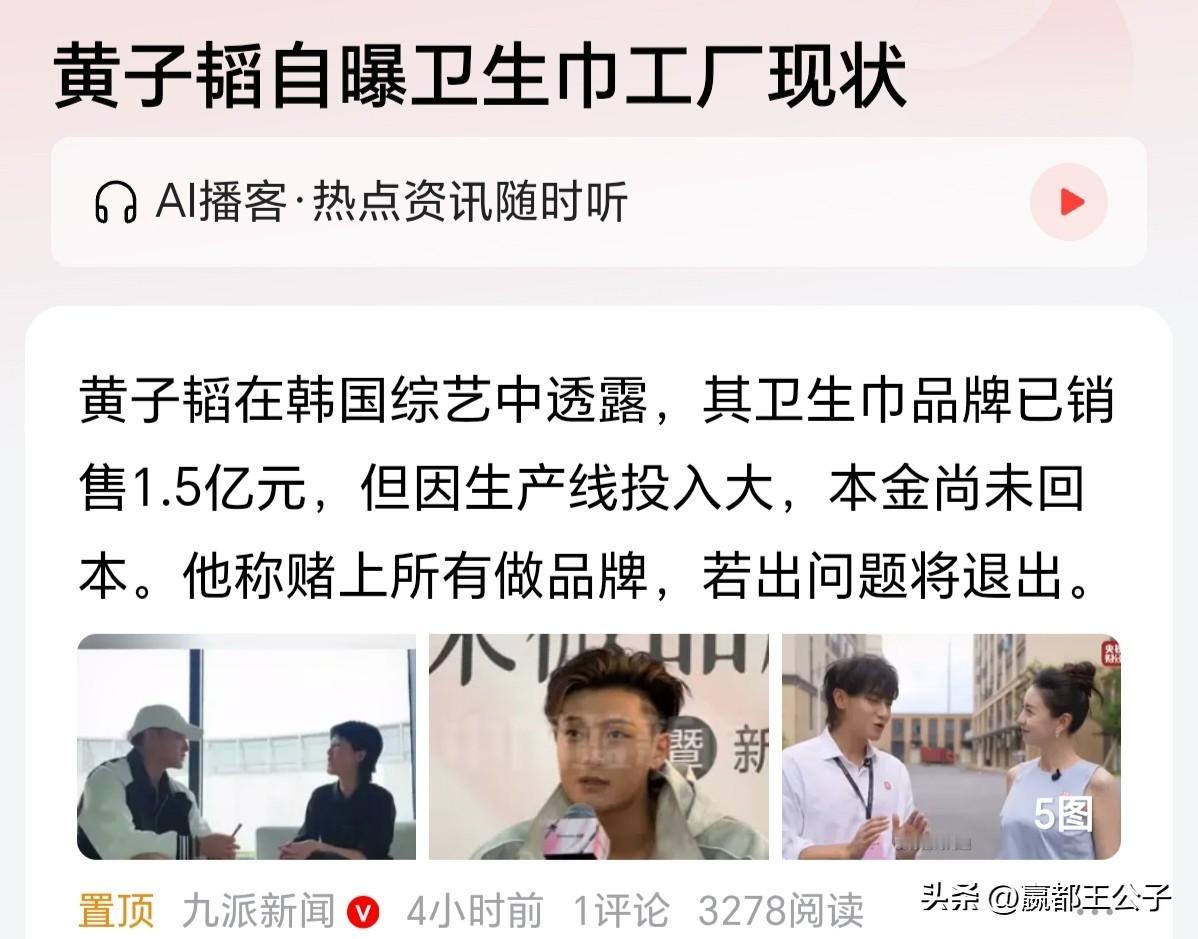 这并不是什么商业眼光,也不是什么创新、质量的问题,卫生巾就是一个产能远大于需求的行业。 很多朋友可能不懂,尤其是女性朋友,一条稍微好一点的产线,一小时能生产12万片卫生巾。 这些生产线都是全自动的,一天可以干24小时,也就是满产状态下,一条线一天能生产288万片卫生巾。 这样的生产线全国有多少呢,数不胜数,这是多大的产能,2025年我国卫生巾产能是3850亿片卫生巾,全中国的女性一天24小时不停的用,也用不完。 在产能严重过剩的情况下,那些厂家不愿意关门,就只能以次充好。 黄子韬流量大,以前直播带货,现在投点钱建产线自营而已,也不需要宣传的多高大上,对整个行业没有任何影响,他才几条产线。