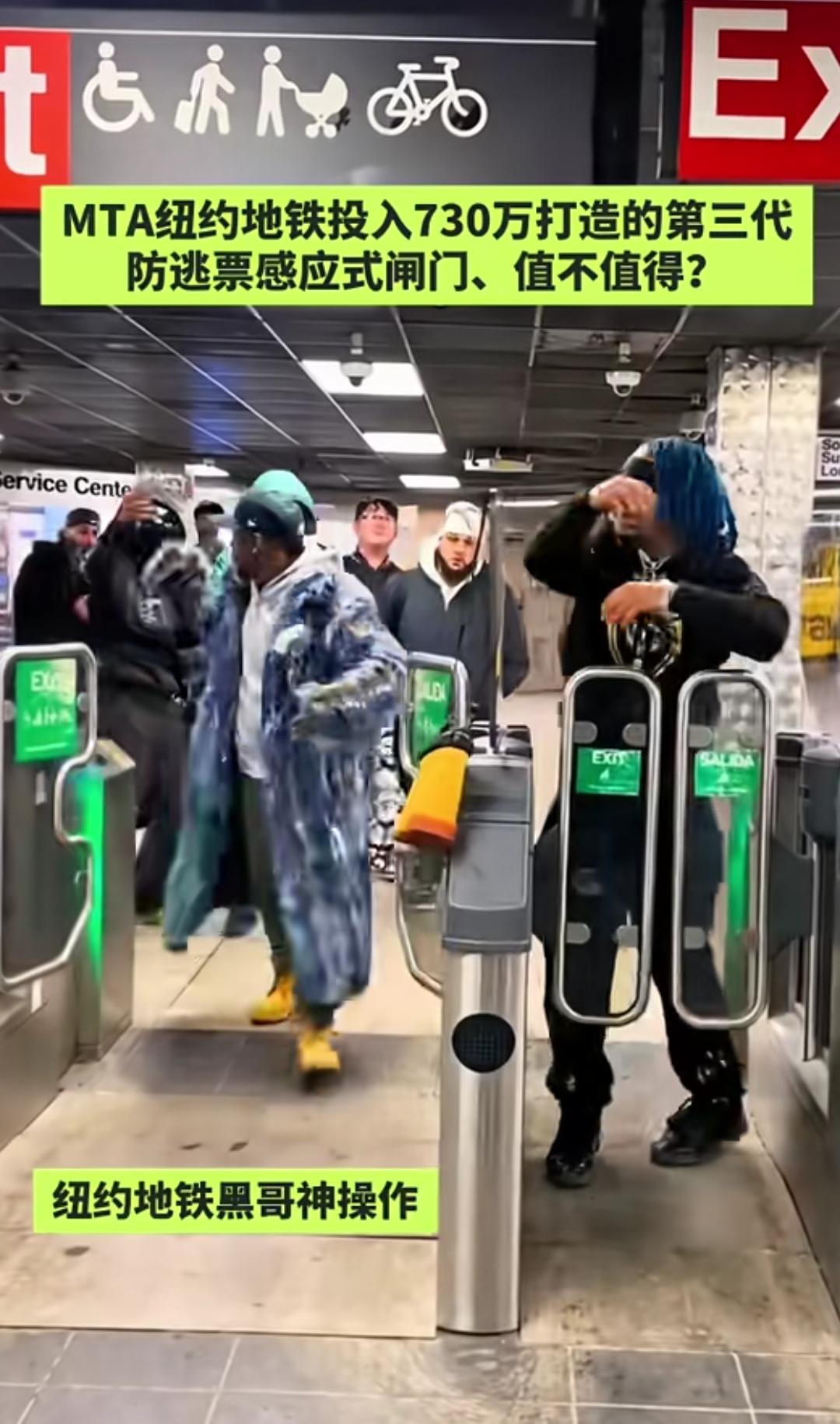 道高一尺,魔高一丈,纽约地铁防逃票门又失效了。 (如图所示)美国纽约地铁防逃票感应式闸门,被一群乘客非常轻松地化解,众人白嫖后大摇大摆地离开,上演了道高一尺,魔高一丈的现实剧。看来逃票系统对这些人彻底无解了,与其继续花费大代价研发,不如都免费,给乘客当福利。