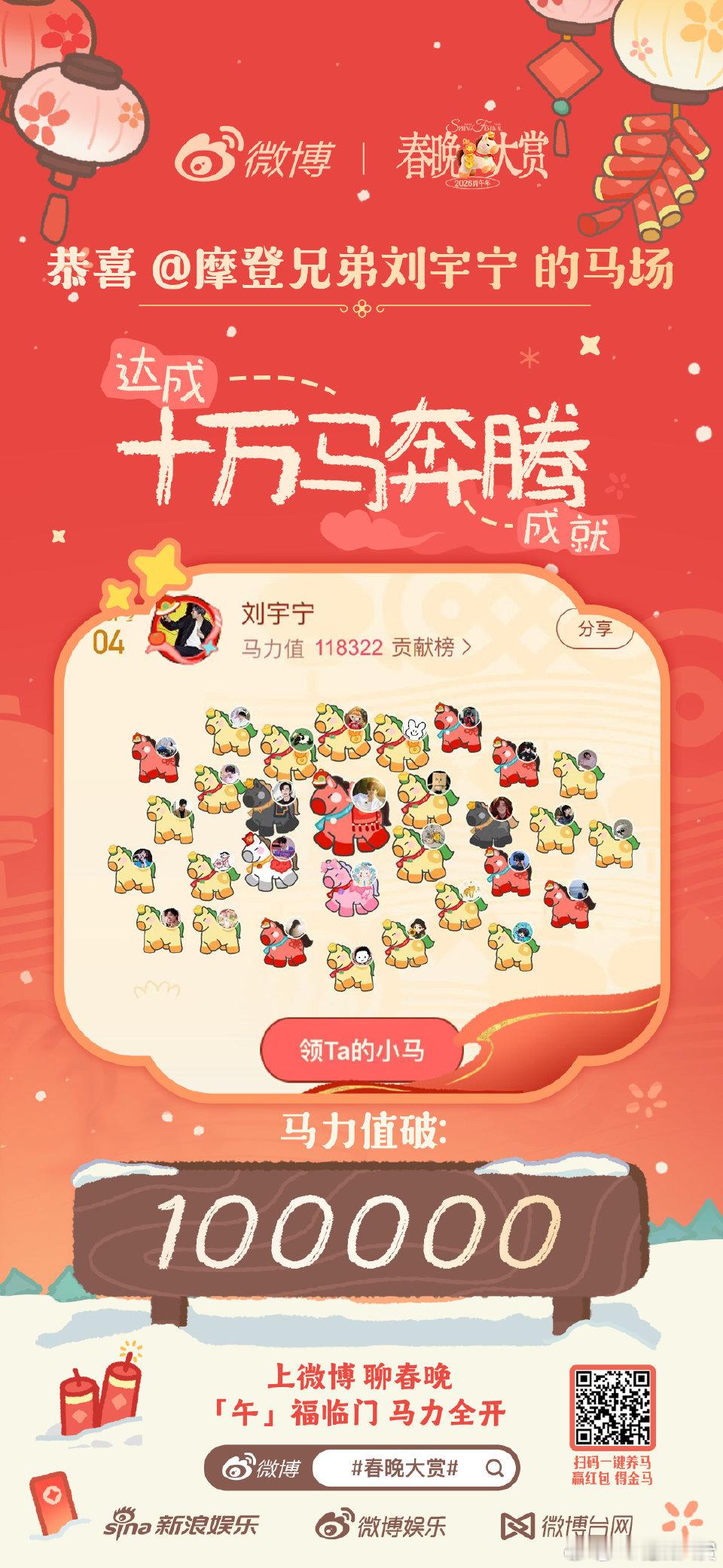 我刚刚在春晚大赏领养了【刘宇宁】的一匹财富马,快来看看吧!马上来拜年 。 「午」