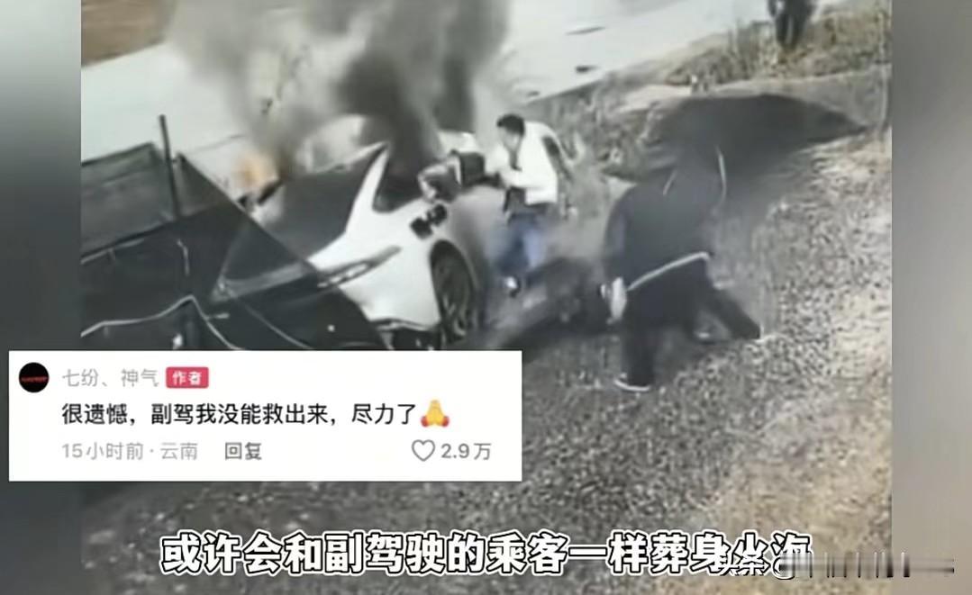 以为是见义勇为的英雄,结果竟是肇事司机,隔了一年还来坑骗网友的钱包,这白衣男子把流量玩得是明明白白! 最近一段电动汽车,电动汽车失控打滑冲路边然后起火的视频火了。这事发生在文山州砚山县,好多网友看完视频,都给那个救人的白衣男子竖大拇指。要不是他舍身相救,电车后排乘客说不定就和副驾驶的一样葬身火海了。 后来这白衣男子开了直播,手上还缠着绷带,几千上万的观众给他送礼物,还有网友建议他申请见义勇为,他也照做了。 可万万没想到,反转来得猝不及防!当地回应说,这白衣男子够不上见义勇为的标准,原因离谱得很,他就是这起事故的主要责任人! 原来他是个货车司机,当时在路口违规倒车,才导致电动汽车避让不及冲去路边的。 这起车祸是2025年3月发生的,都过去一年了,他突然把视频放出来博流量,这不得不让人怀疑他是故意装成救人英雄,想开播收割网友礼物。 而且都过去一年了,他手上还缠着绷带,伤筋动骨一百天也该好了,他那只是划伤加烫伤,哪能这么久都好不了啊。