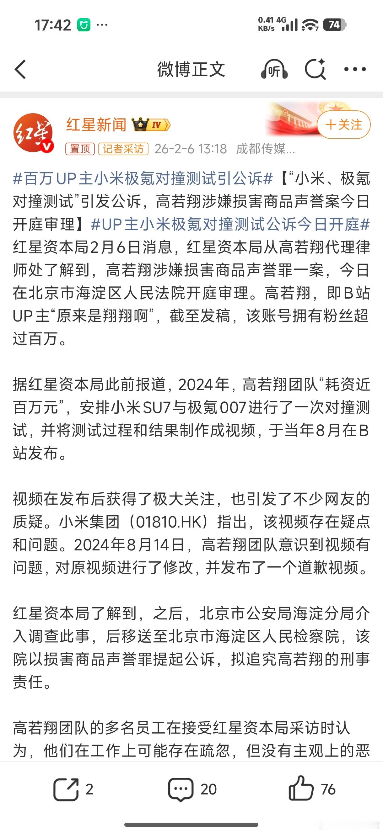 笑死,将涉嫌犯罪的翔翔说成普普通通的商誉官司…注意流程好不好,公安介入调查,然后递交检察院,检察院提起公诉,这些流程说明涉嫌犯罪了,如果只是普通的商誉,那就是小米跟翔翔的民事诉讼了…