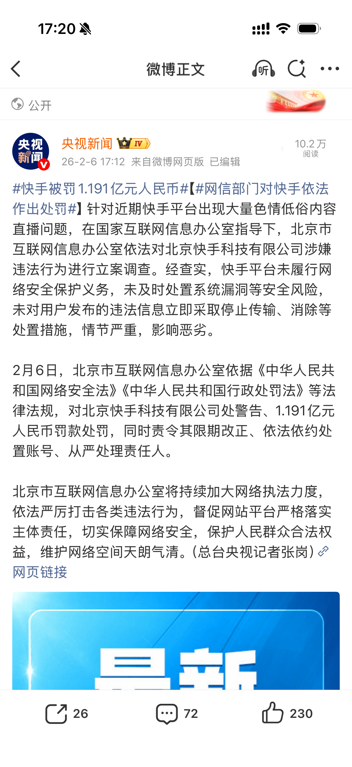快手被罚1.191亿元人民币上次快手出现大批量色情内容,处罚通告来了,处理相关责