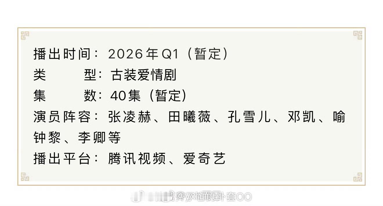 张凌赫、田曦薇《逐玉》开启播前招商,预计第一季度在腾讯/爱奇艺播出!
