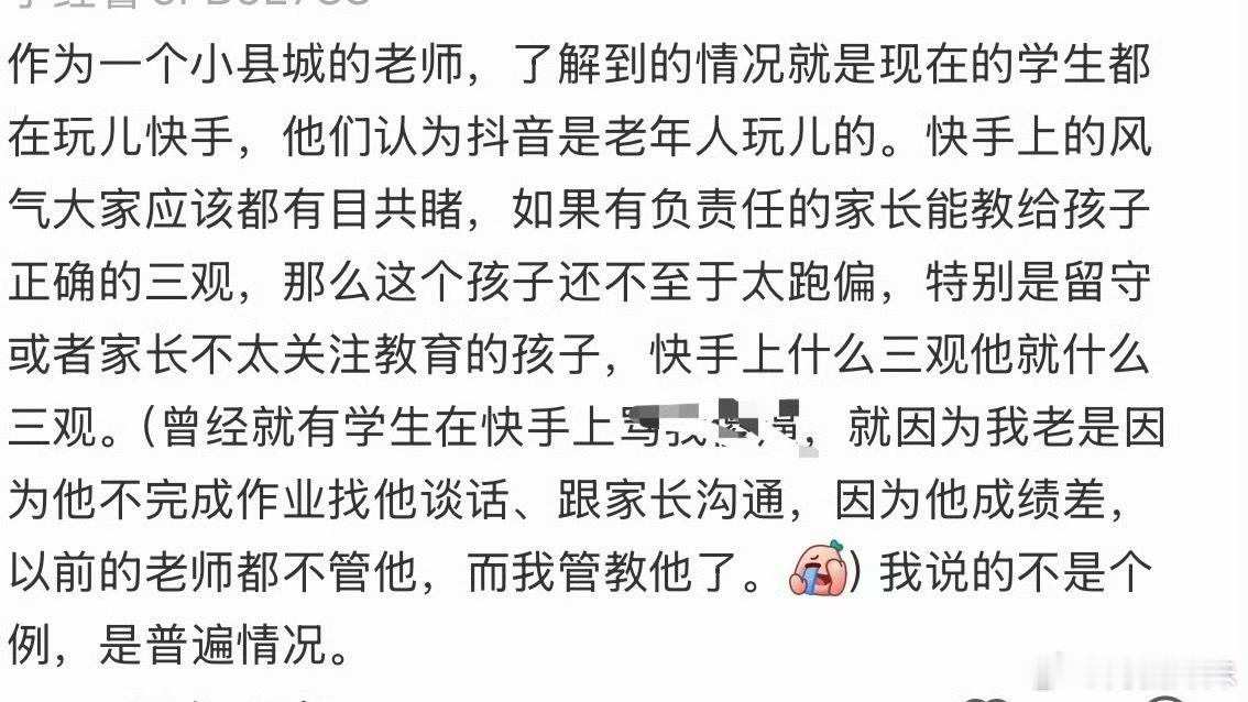 有的家长发视频说,在孩子手机快手看到发的视频简直就跟变了一个人一样,成熟的不像是这个年龄段的。