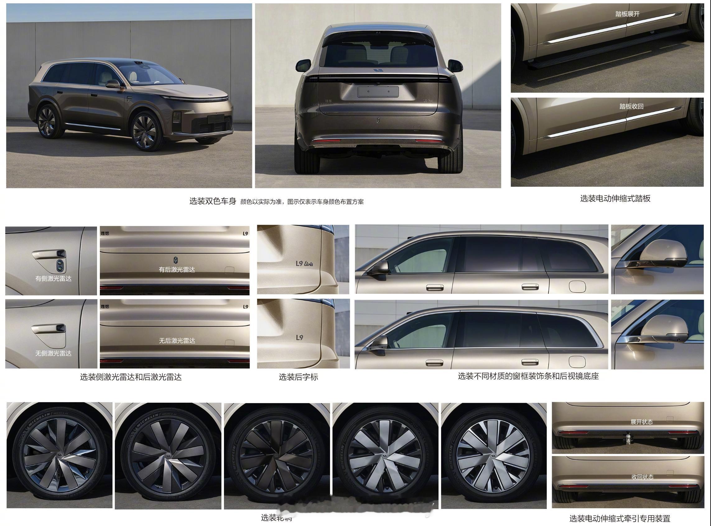 理想今年的重磅增程产品蓄力之作新理想L9 Livis主打的是我们熟悉的三排六座且配置上有突破配置今天早些时候大家都见了看看申报的信息尺寸长宽高5255/2000/1810mm轴距3125mm增程器来自于江苏理想动力科技有限公司L3E15CA—115kW电池申报信息72.7度—纯电续航340/332km全新一代理想L9新能源汽车