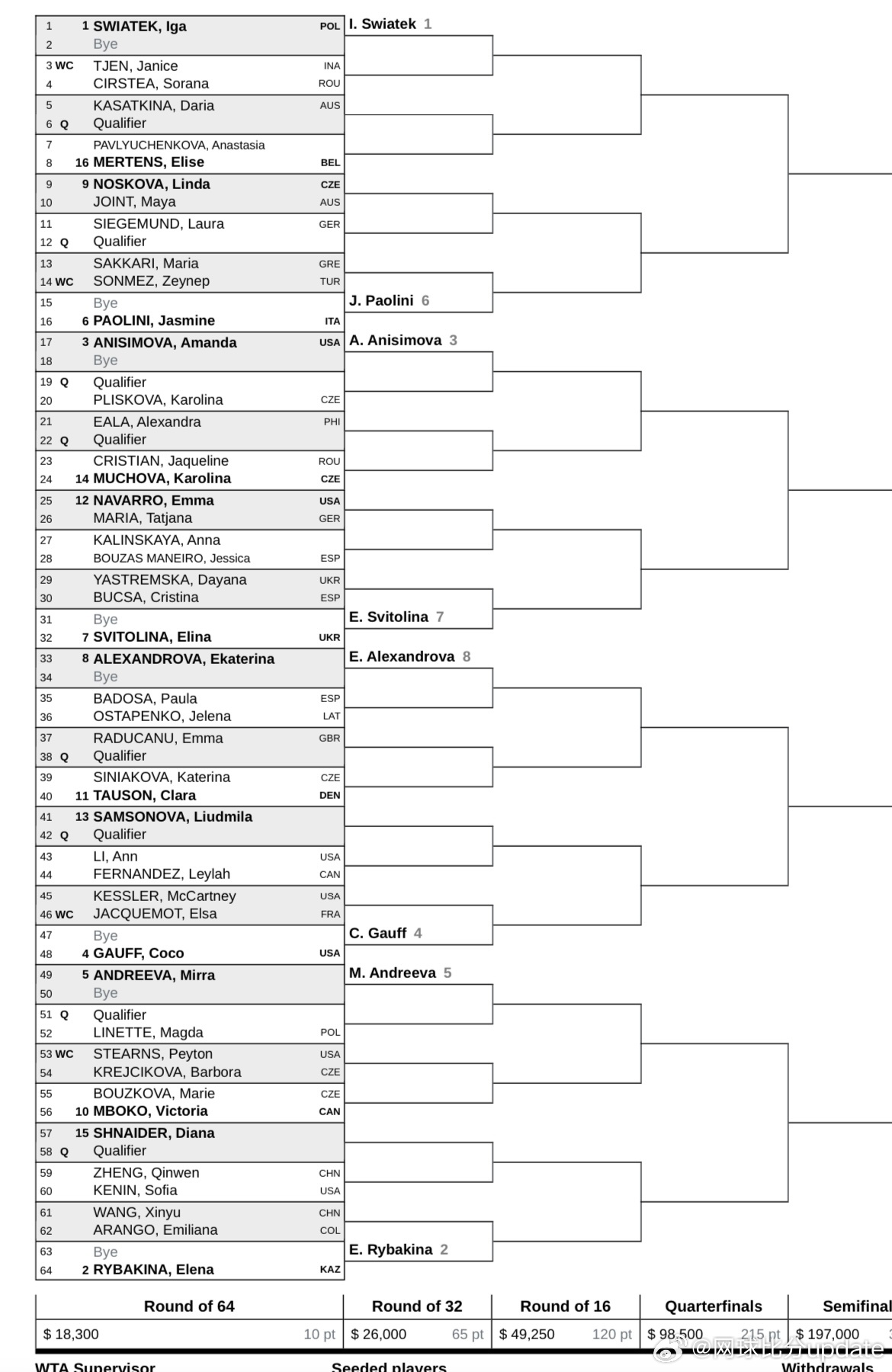 两位金花都抽在了澳网冠军莱巴金娜所在的1/8 区
