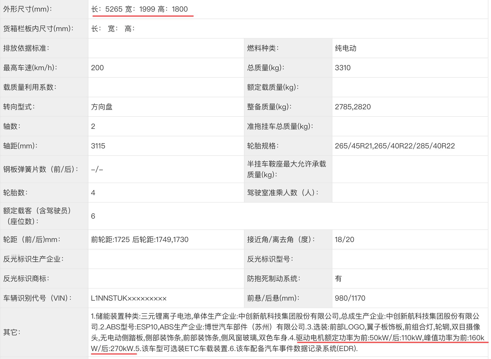 尊界S800重新申报了新的发动机,依然是1.5T,输出功率127kW,但是发动机
