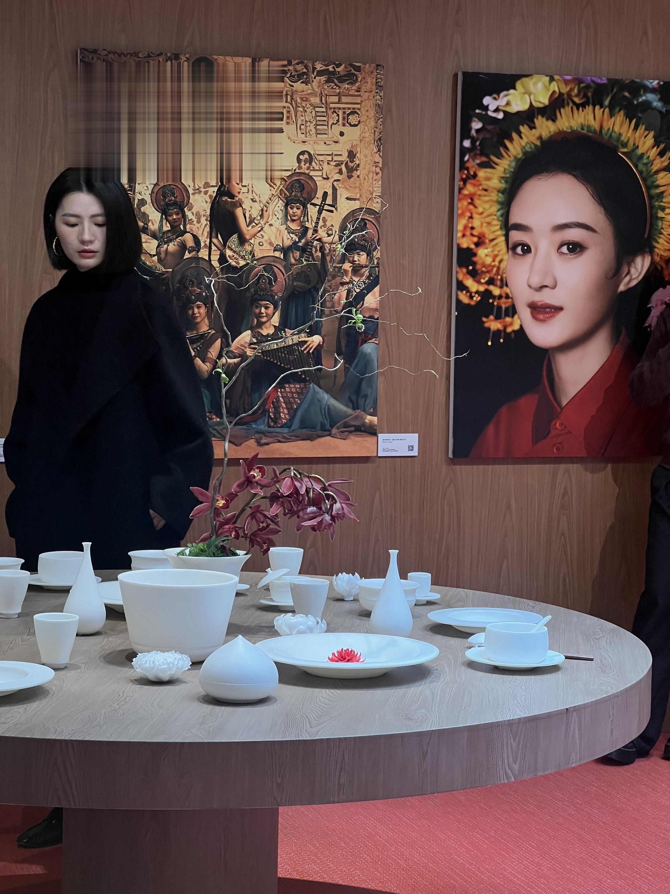 孙允珠,淡蓝色吊带长裙完美展现了她的优雅气质和身材优势。