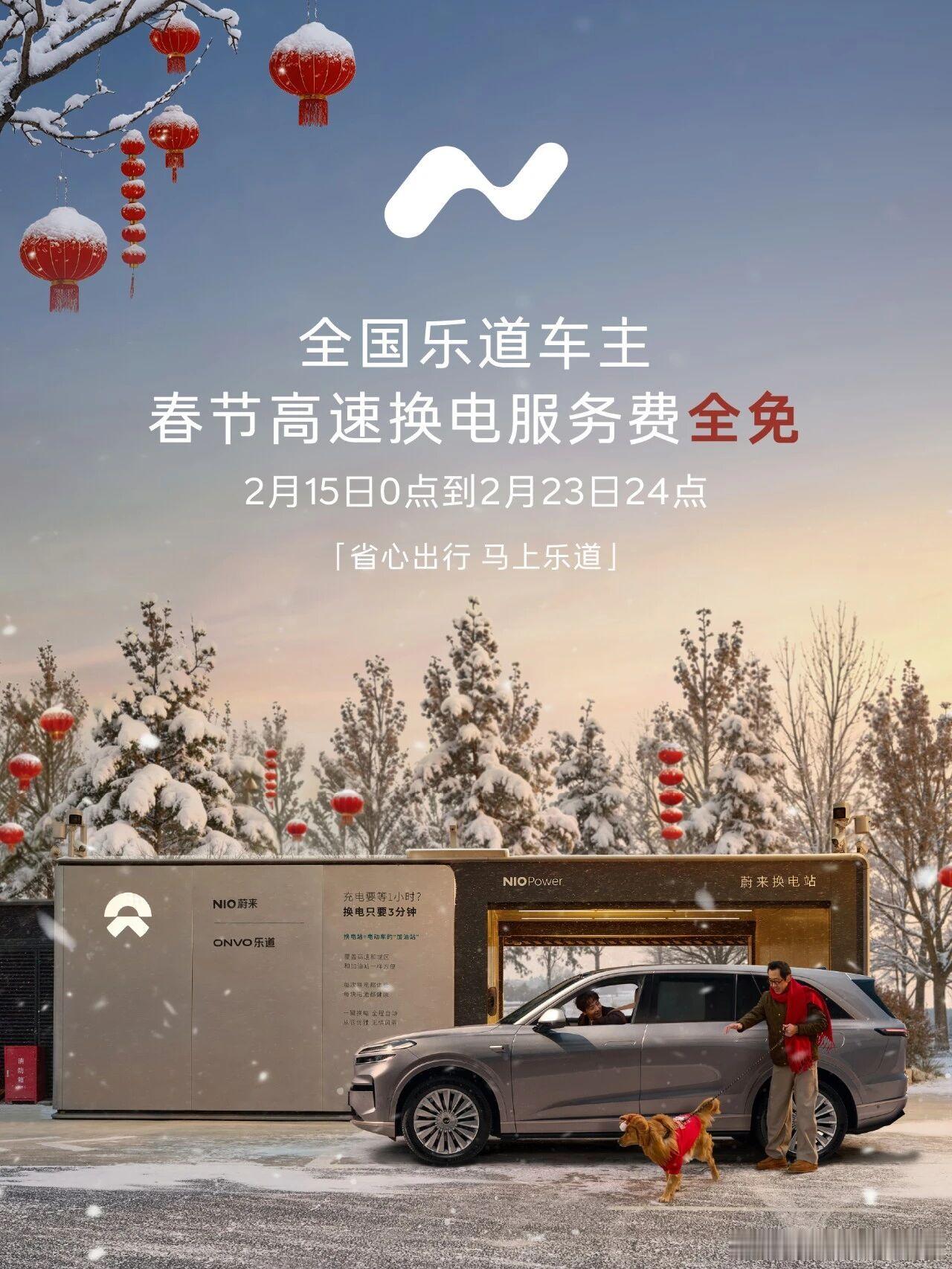 2 月 15 日- 2 月 23 日春节假期期间,全国乐道车主,春节高速换电服务费全免。