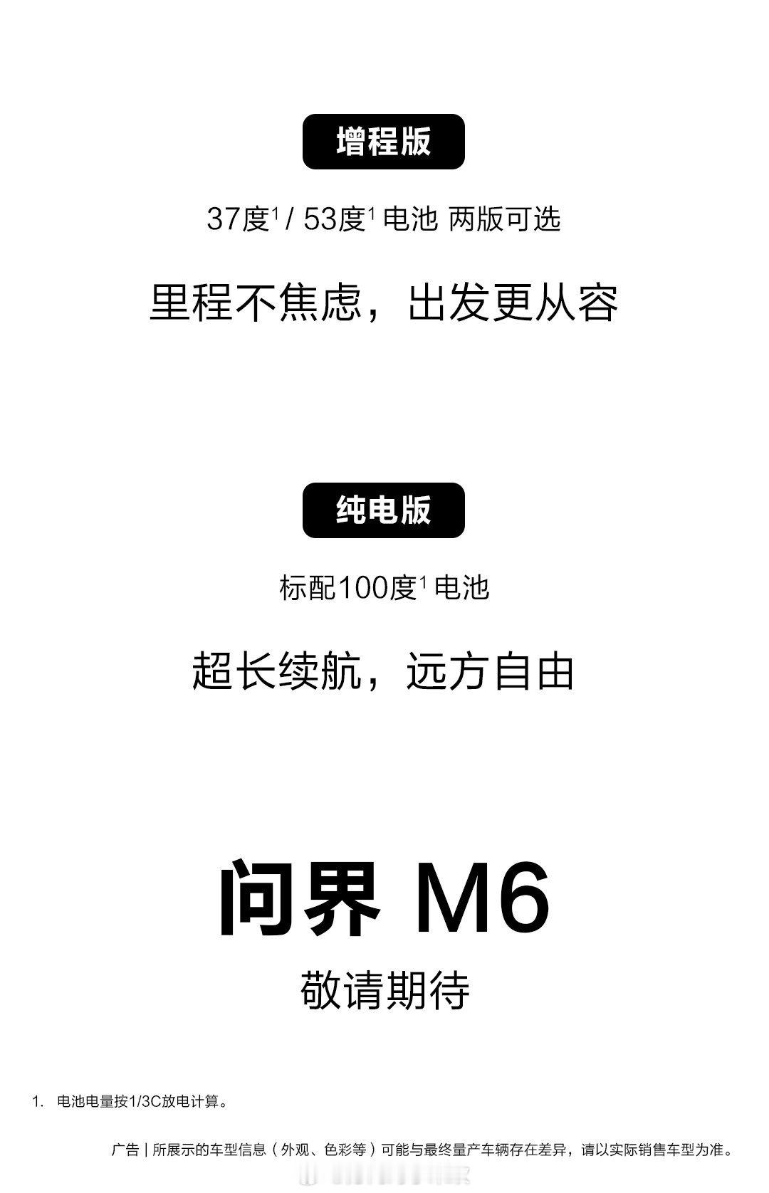 问界m6纯电版标配100度大电池 鸿蒙智行问界M6纯电版核心配置曝光,全系标配100度三元锂电池,CLTC续航直逼750km,高速续航也能轻松突破600km,彻底打消长途出行的续航焦虑!新车基于华为800V碳化硅高压平台打造,支持15分钟补能80%的超快充,还搭载全系标配的ADS 4.0高阶智驾,定位25万级五座中型SUV,精准对标理想L6、特斯拉Model Y,预计2026年第二季度正式上市交付~大v聊车