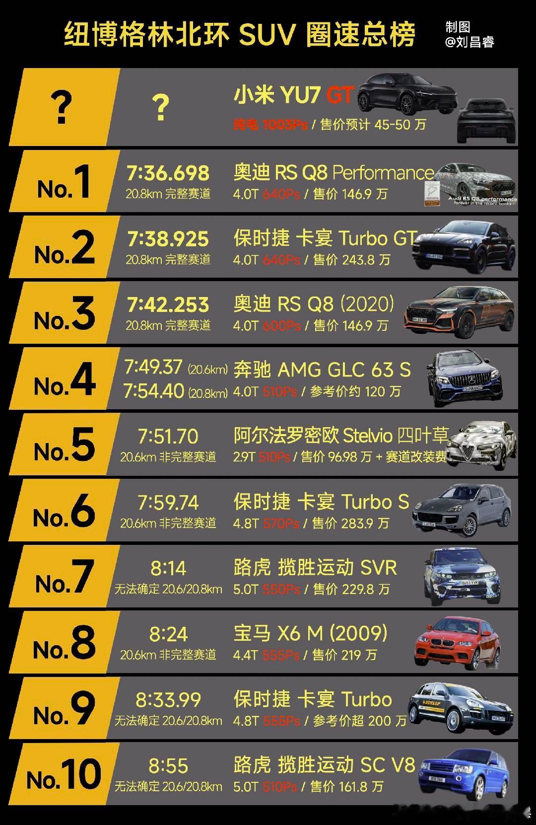 这台车之前一直在纽北刷圈跑赛道,纽北赛道调校加持没跑了,不知道圈速能不能干掉一两百万的奥迪 RS Q8 Performance ( 7 分 36 秒 698 )和保时捷卡宴 Turbo GT 以( 7 分 38 秒 925)