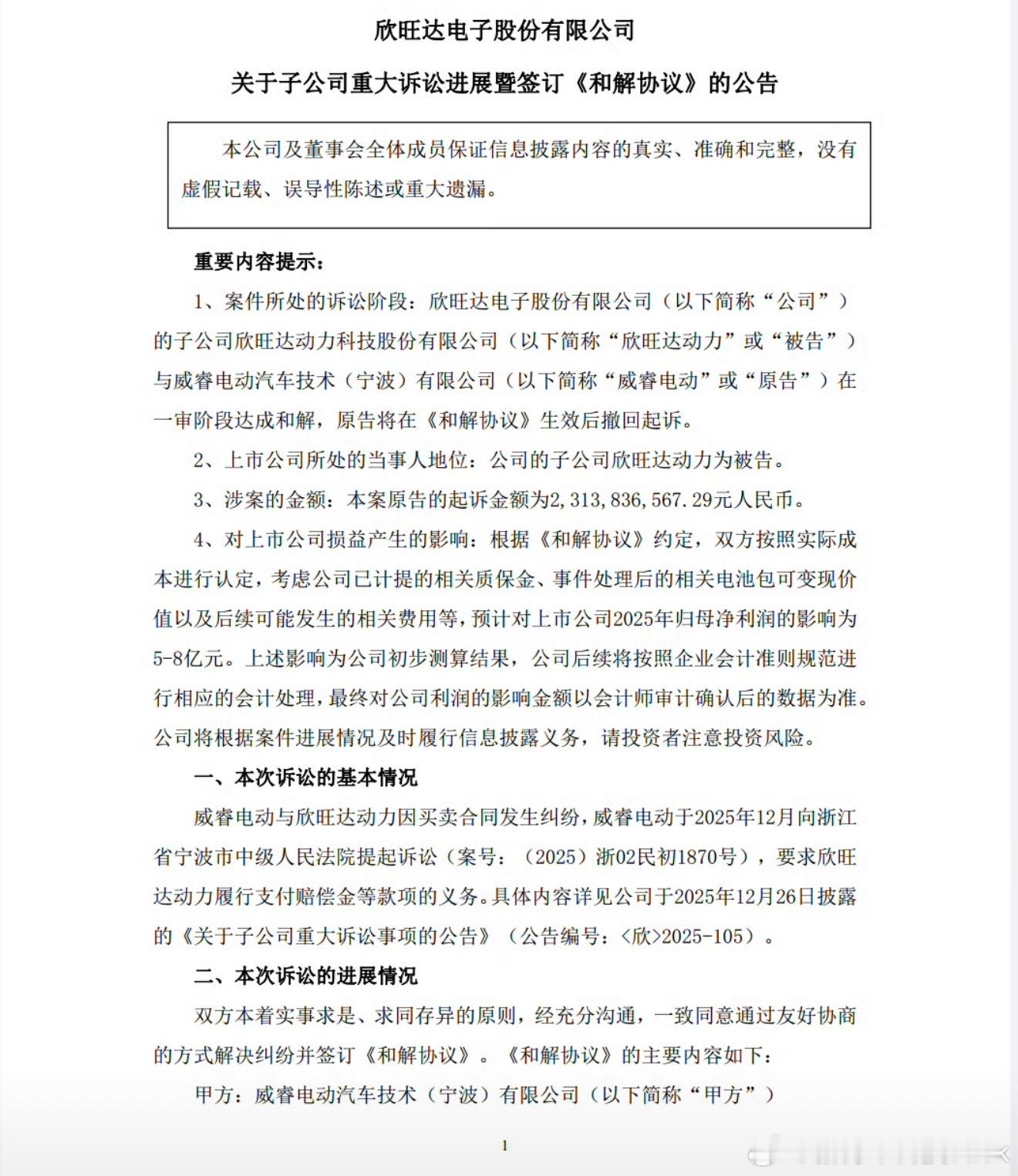 欣旺达支付6亿元与吉利达成和解并且配合召回