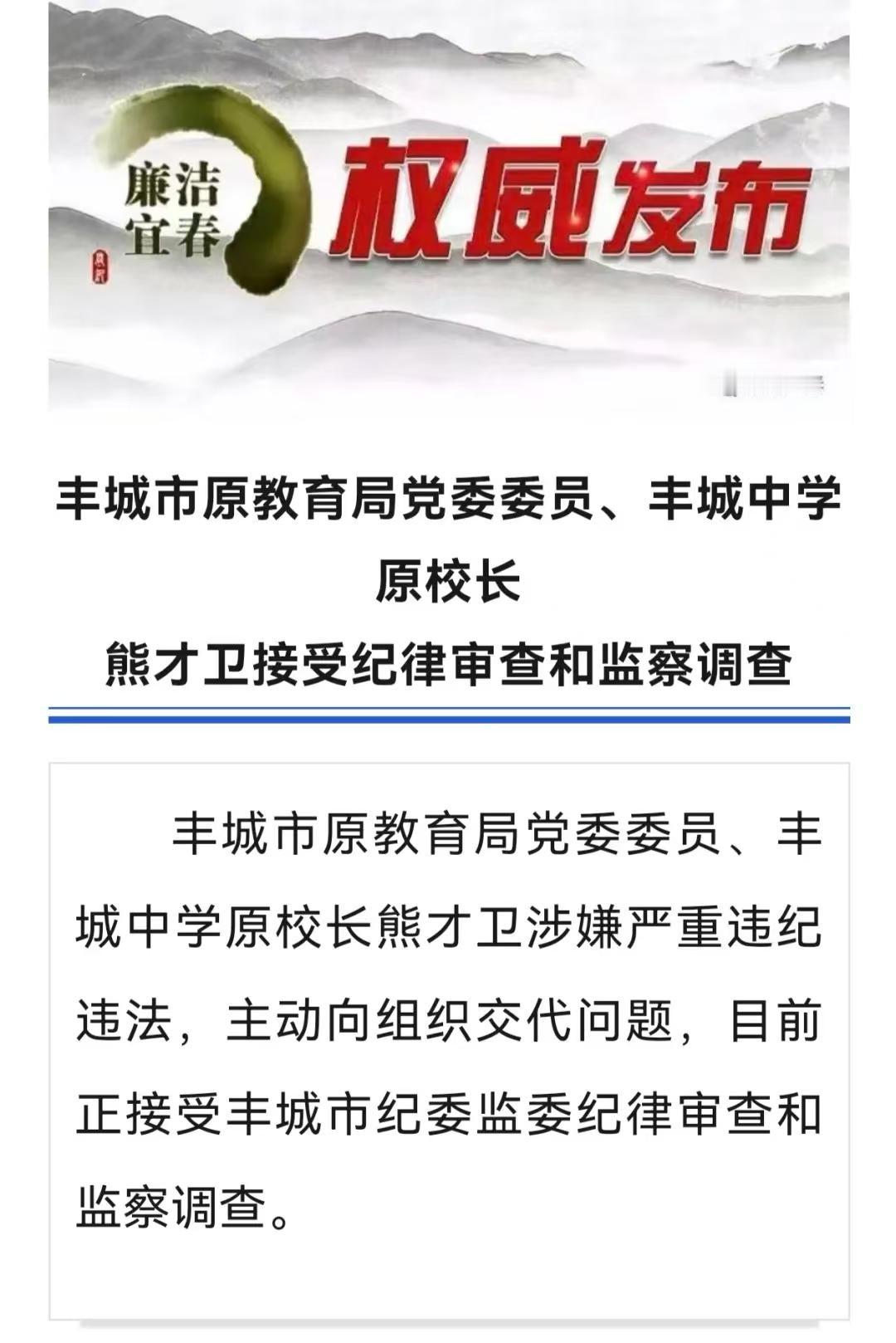 退休4年的丰城中学原校长熊才卫,今天彻底栽了。 这个熊才卫在丰城市的教育圈,此前