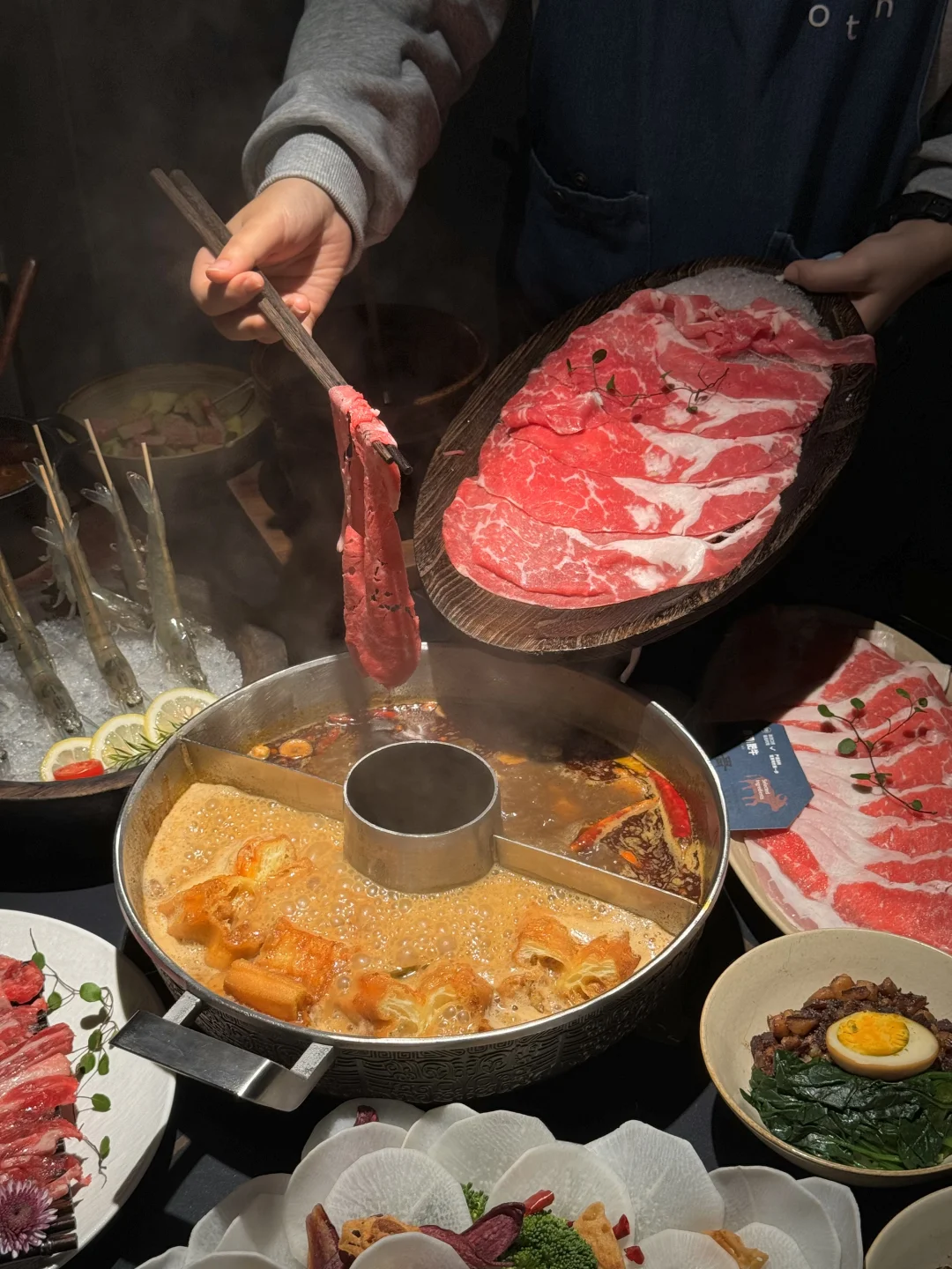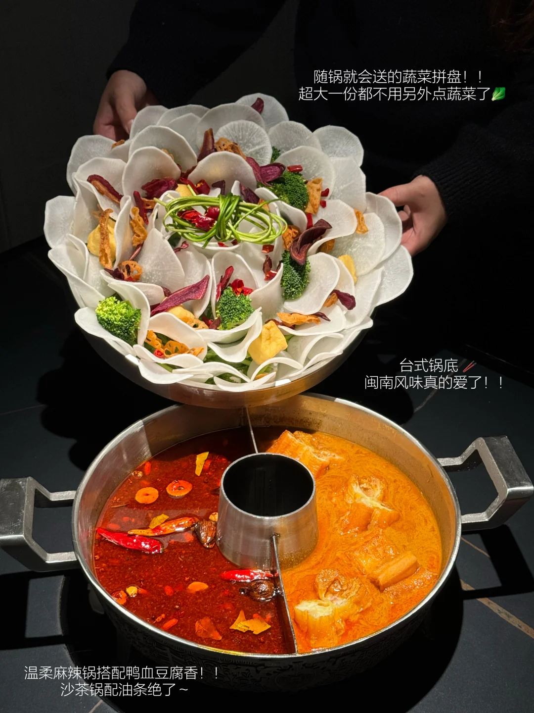 在无锡!我隔三差五就要来吃的台式火锅~ 环境有点小高级… 饭点真的座无虚席!! - 卤肉饭一定要夸… 还能无限续!! 推荐沙茶鸳鸯锅 直接送一整份蔬菜拼盘…. 还有免费的鸭血豆腐也是无限续!入座就送上酸嘢和开胃饮!服务真的到位! 奶茶也是特色😭黑糖珍珠鲜奶茶、烤布蕾珍珠鲜奶茶!珍珠Q弹好喝不甜腻呀🧋 -