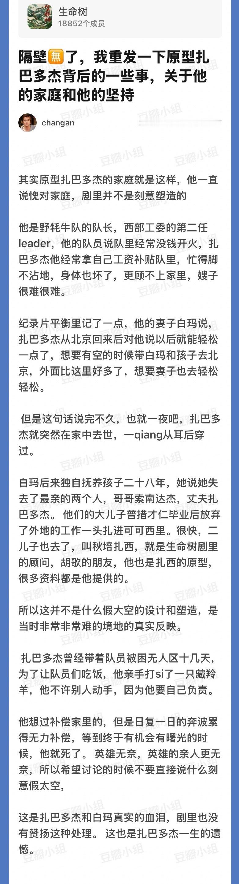 生命树看到今晚的剧情,才仁为了帮助多杰把自己家传的四眼天珠卖掉,真的泪目了这个帖子记录了关于原型扎巴多杰背后的故事,他的妻子作为英雄的家属也牺牲了很多,多杰走后一个人抚养孩子长大,在无数的困难面前,不知道多杰有没有过后悔自己的选择…很多时候我们只记得英雄的伟大,却忘记了他背后默默支持的那个人