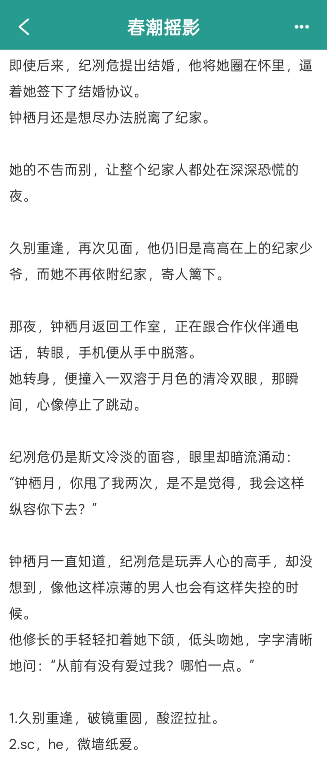 拉扯好带感!开篇破镜重圆,表面装不熟其实私下交往几年,男主做的每一步都是为了跟女主在一起,几年后女主回国他再抑制不住思念直接拉去结婚!婚后生了个女儿超萌!