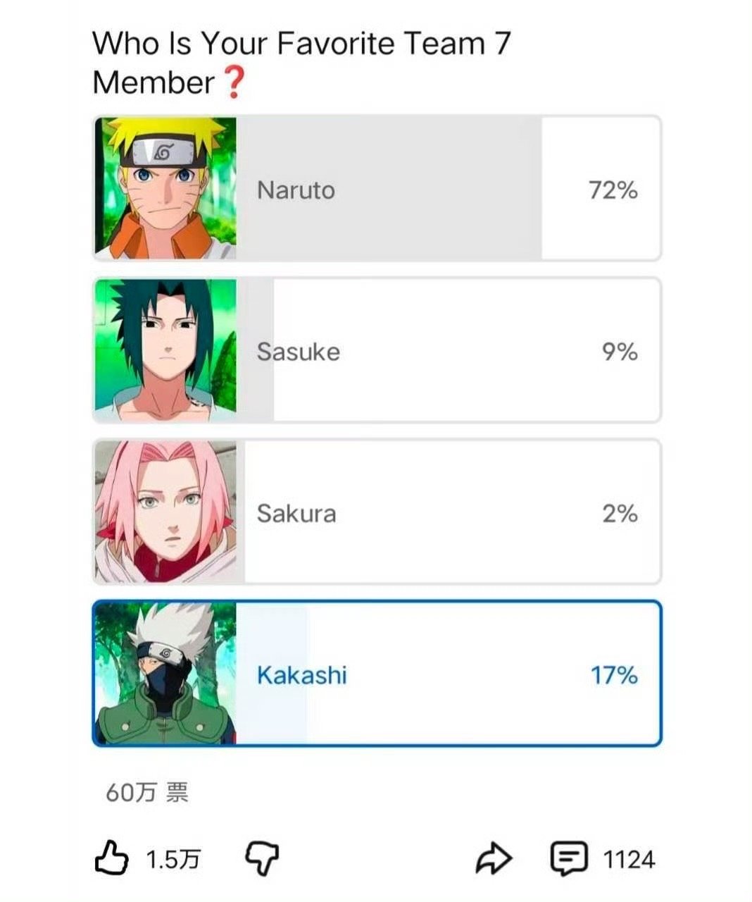 漩涡鸣人是火影忍者人物老福特tag数量最先破10w的角色,并且在ao3上是首个破5wtag的角色。在最近一次油管人气投票中,漩涡鸣人以72%的票选率碾压火影配角。漩涡鸣人是《新闻周刊》日本版“最受世界尊敬的100位日本人”中唯一入选的动漫角色,并曾担任日本奥运会的宣传形象大使。在众多日本名人中,大众最先联想到的往往就是漩涡鸣人。他不仅在全球范围内享有极高的知名度与人气,更是日本文化输出的标志性角色之一。作为火影永远的主角,鸣人的影响力早已超越动漫领域。在CCTV13报道火影完结的新闻中,选用12鸣图片作为标志性画面,可见其广泛的社会讨论度与时代意义。漩涡鸣人火永一