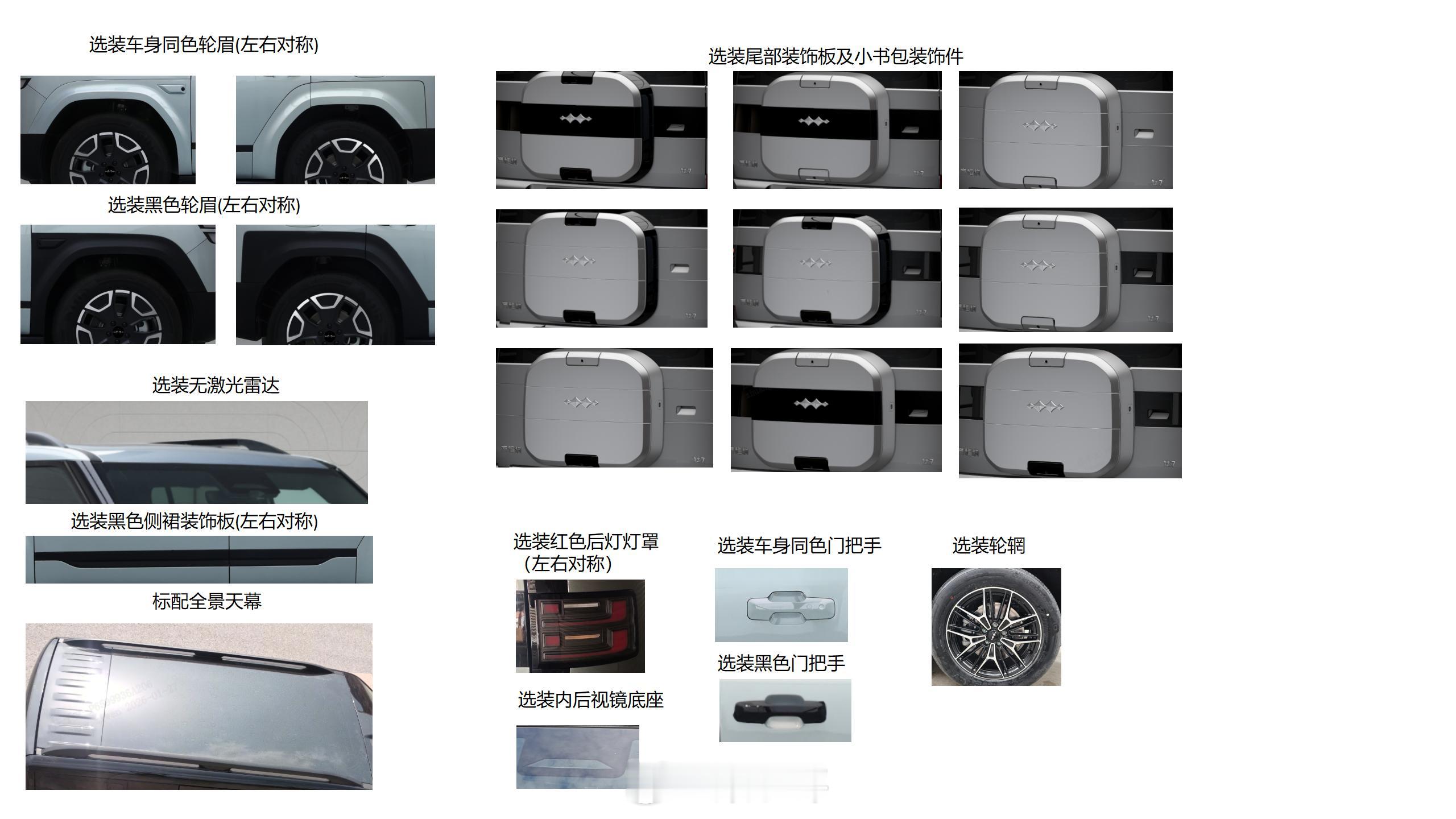 方程豹钛 7 纯电版申报信息:单电机版功率 300kW双电机版功率 215kW + 300kW标配全景天幕,可选激光雷达、拖车钩