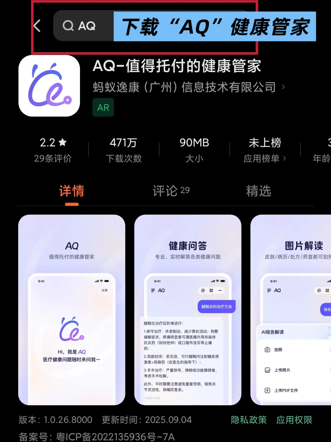 还好,最近我发现了一个宝藏app“AQ”,是蚂蚁集团推出的健康应用✅,可以理解为一个随身的健康顾问👨⚕️。AQ健康管家包括检查报告解读、健康科普、三甲中医智能体……