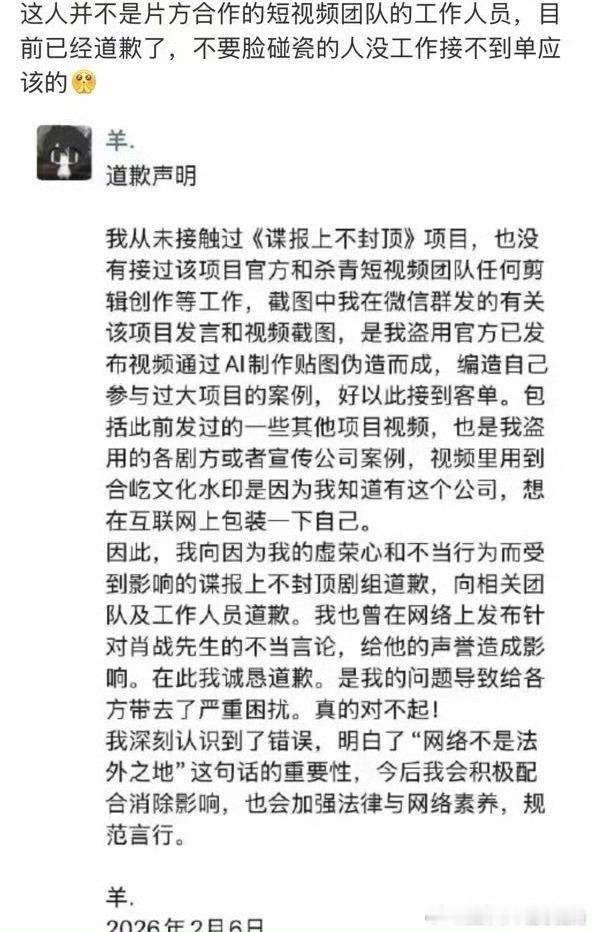 这谁啊?被谍报剧方告了吧?走歪门邪道可不好走喔