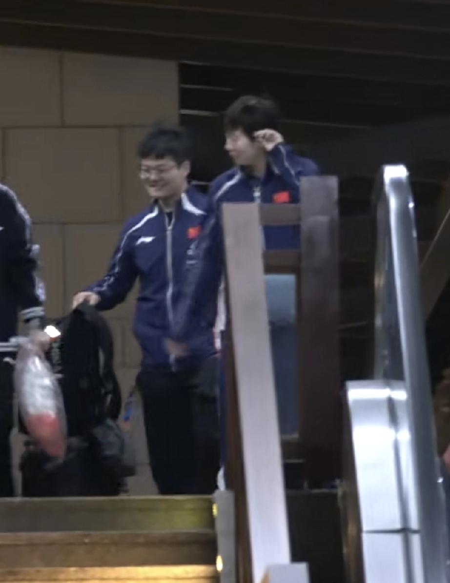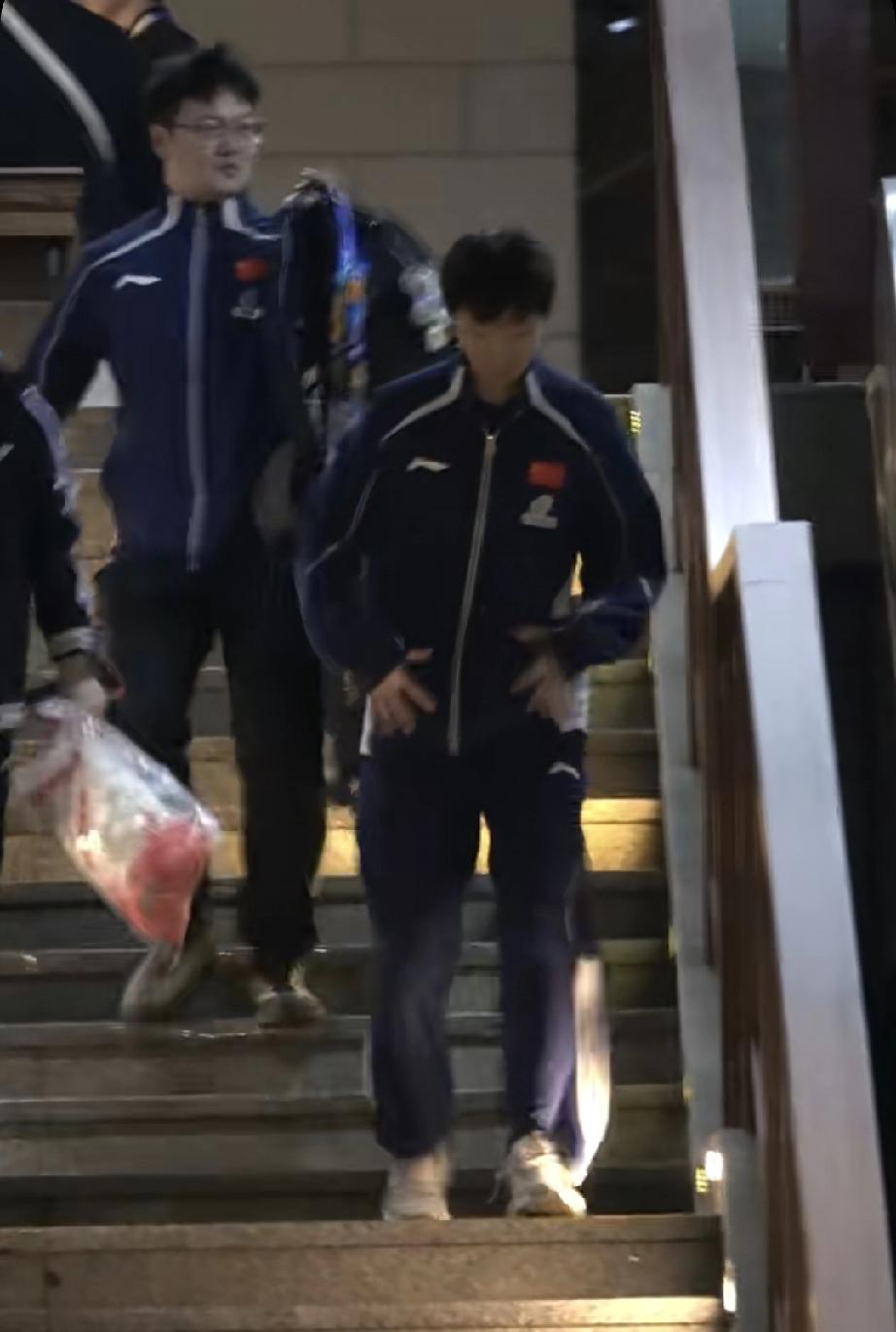 海口亚洲杯,王曼昱成功完成小组赛三连胜,以小组赛第一名晋级淘汰赛。下班回酒店,在餐厅吃完饭后,和徐奕孟队医一起回酒店路上,曼昱看起来挺轻松。 孟队医也是大好人,知道曼昱身体还不是完全康复状态,直接下楼梯都是自己一把拎起来两个箱子。曼昱可以不用背背包轻松下楼。 感恩孟队医,真的体贴,也相信小孟队医的实力,臂力刚刚的!