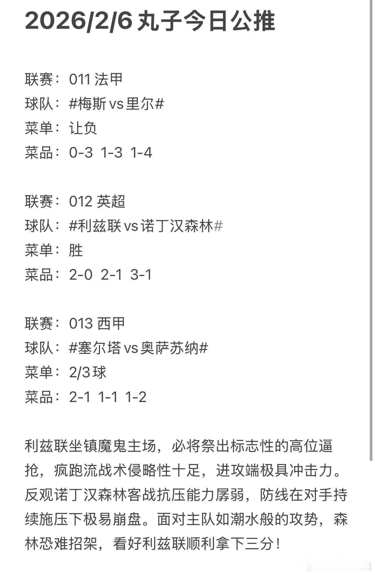今晚赛事,兄弟们自行参考!祝兄弟们一路长虹!利兹联vs诺丁汉森林塞尔塔vs奥萨苏