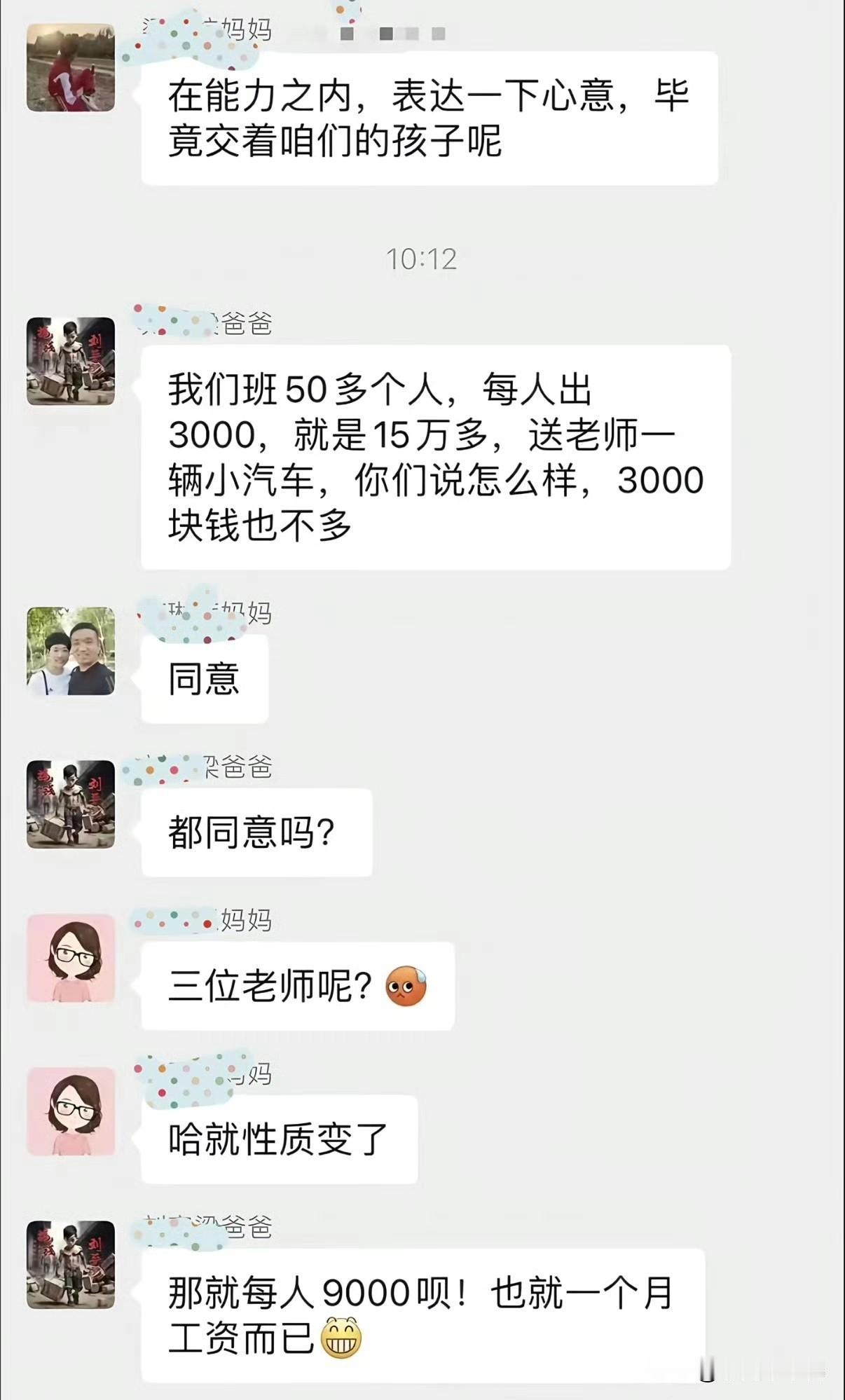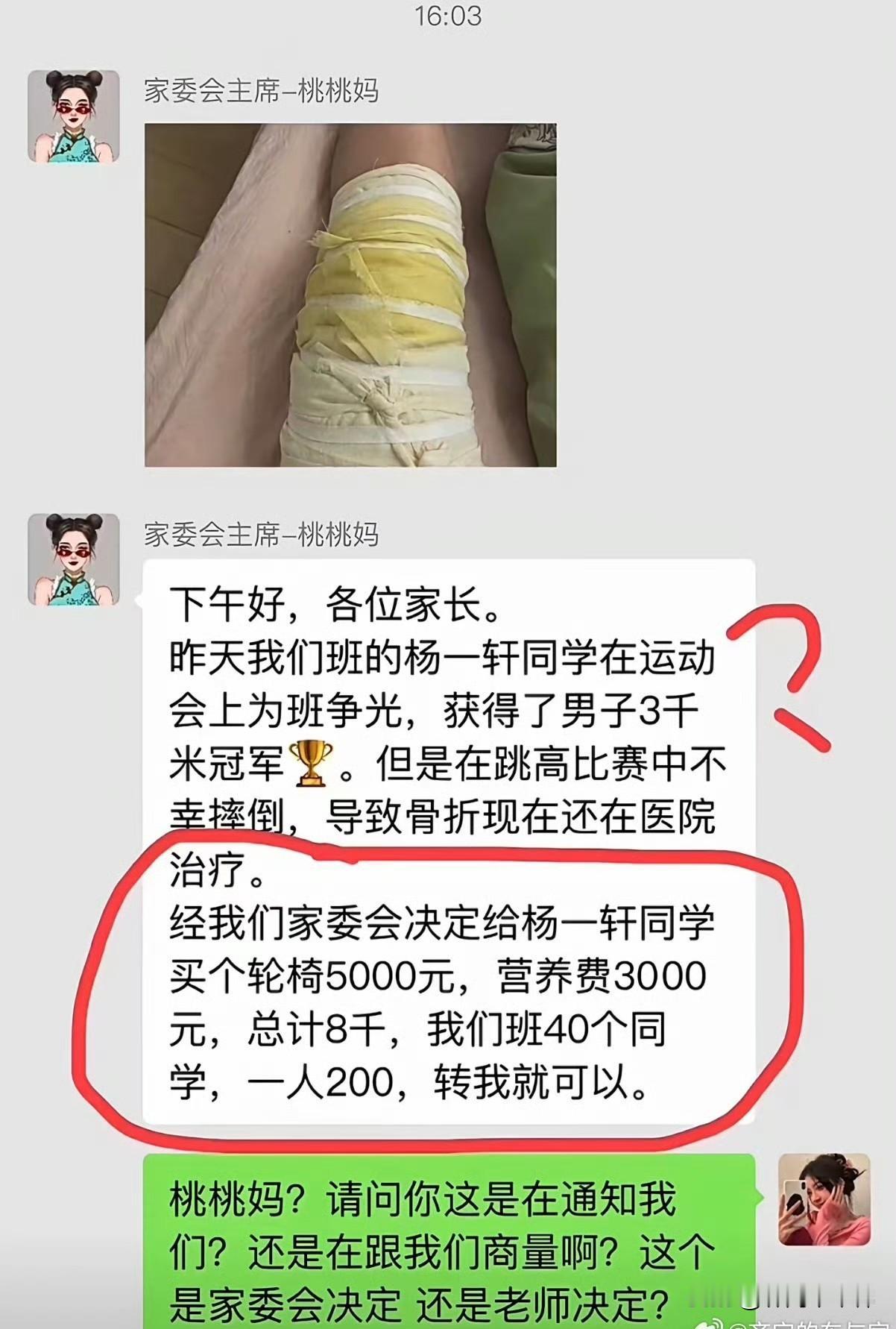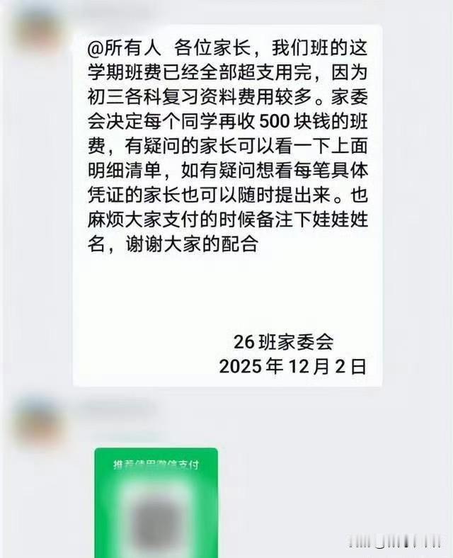家委会怎么成了人人喊打的存在!重庆一位家长举报家委会三年收取18万班费,教委会查实后,通报要求退回剩余4700元! 有人说大家只看到了18万这个数字,却没看到全班46个学生,3年,合到每个人身上,每一学期每人出了652元。 而初中有8门课,语数英物化生史地,也就是一学期一门课81.5元。这样算好像并不贵。 这个算法就好像销售在向你推销产品时,会跟你说,这个东西看起来贵,但是合到每一天,每一顿,才2块钱!这个细化分割,巧妙的化整为零,把大钱化为不起眼的小钱,使人放松,更容易买单! 家委会本来是本着为孩子们服务,家长自发的组织,收钱,买资料,送学校,发到每个人手中,付出了大量的时间精力,众口难调,始终难以满足每个人的需求。最后还要被家长举报。 究其原因,有个别的家委会,打着买资料的名义,多收钱,乱收费,不公开付费明细,使得家长产生了不信任,损坏了家委会的名声。 其实最好的方法就是老师说明需要买哪一本资料,家长自行购买即可。现在学校难,家长也难。孩子读个书都给家长整焦虑了! 家委会乱象