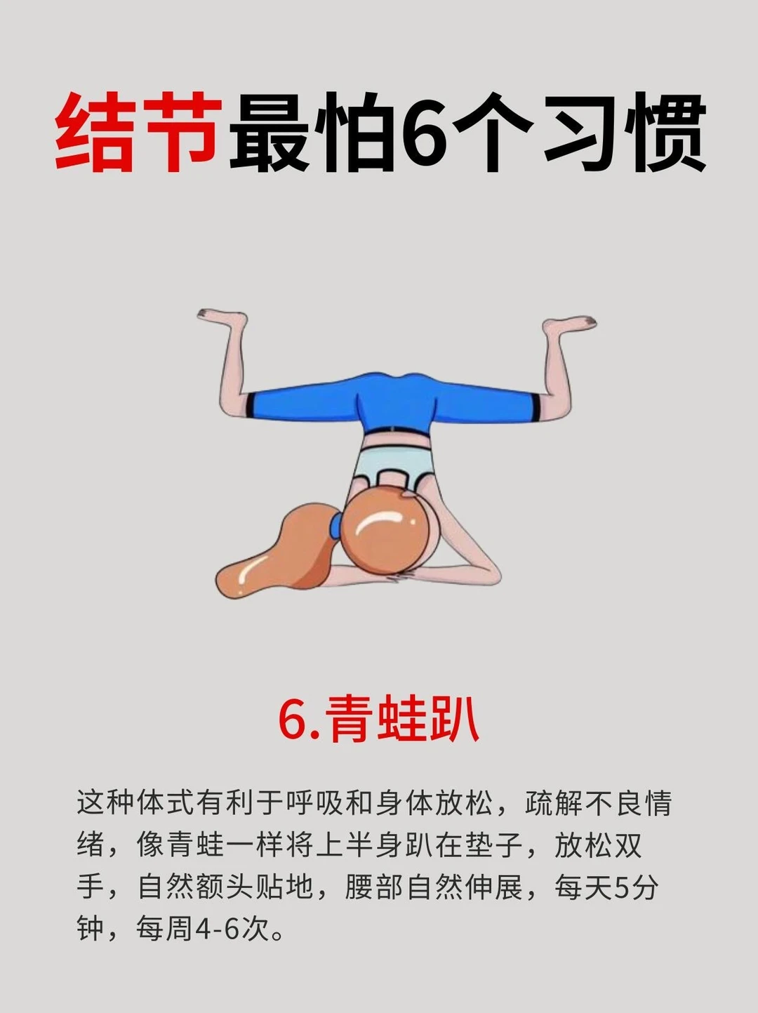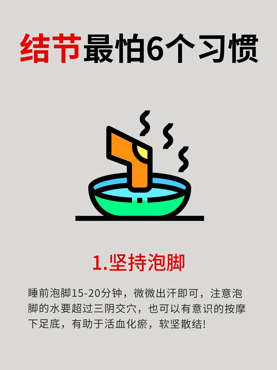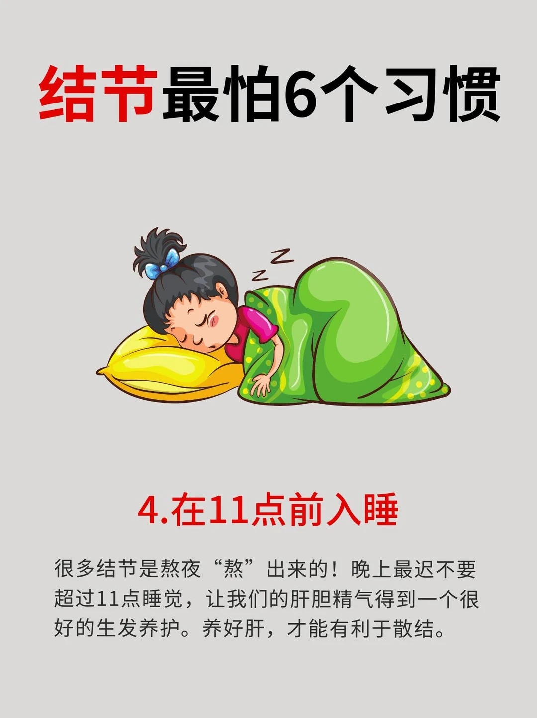记录吧就现在 结节最怕的6个习惯 1.坚持泡脚 2.推肝经 3.刮地筋 4.在11点前入睡 5.金鸡独立 6.青蛙趴