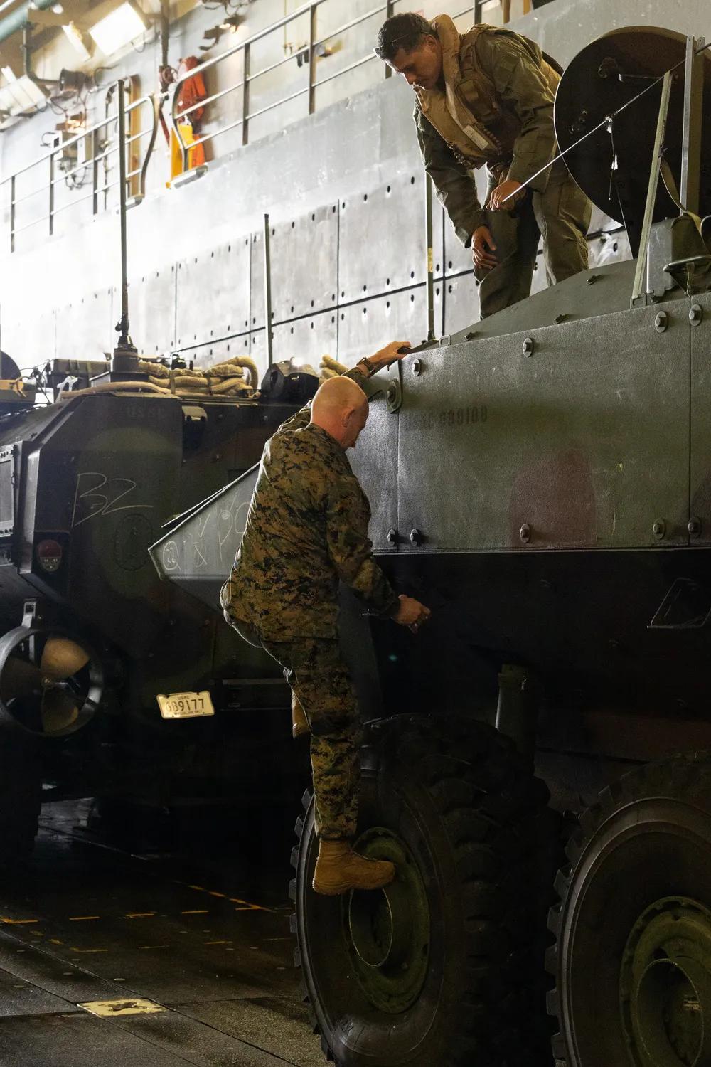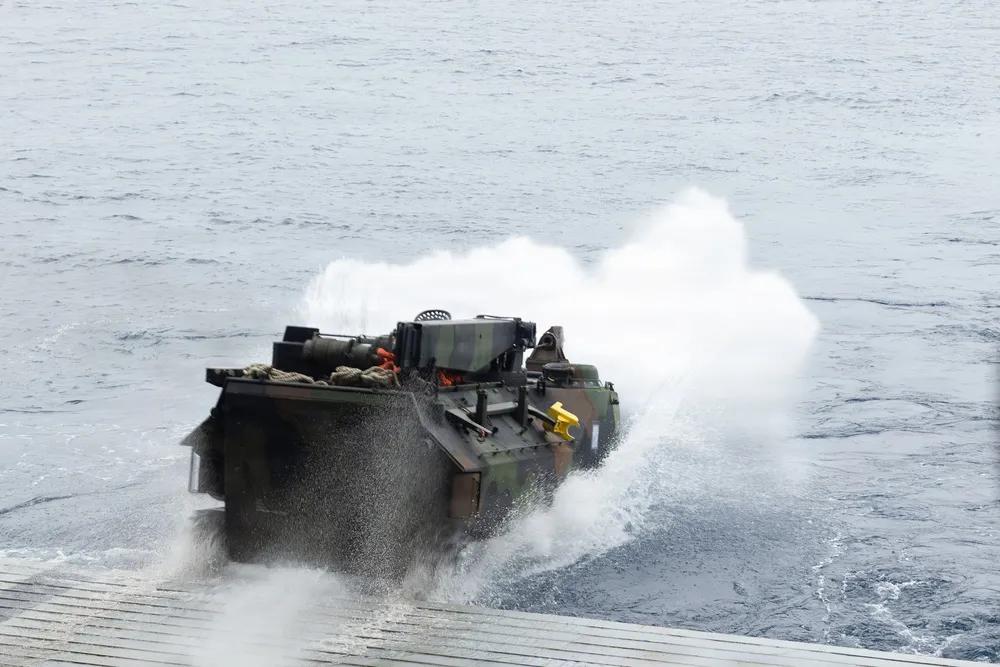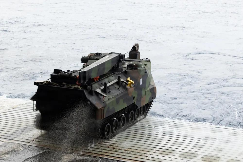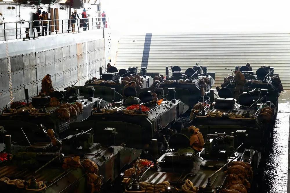 2026年2月2日,第31海军远征部队在日本冲绳海岸例行作业期间,从圣安东尼奥级两栖运输舰USS San Diego (LPD 22)起飞。美国海军陆战队第三远征旅司令罗伯特·布罗迪准将访问圣地亚哥号,观察第31海军远征部队执行例行两栖作战车辆作战。第31海军远征军是海军陆战队唯一持续前沿部署的远征部队,提供灵活且致命的部队,作为印太地区最重要的危机响应部队,随时准备执行广泛的军事行动。