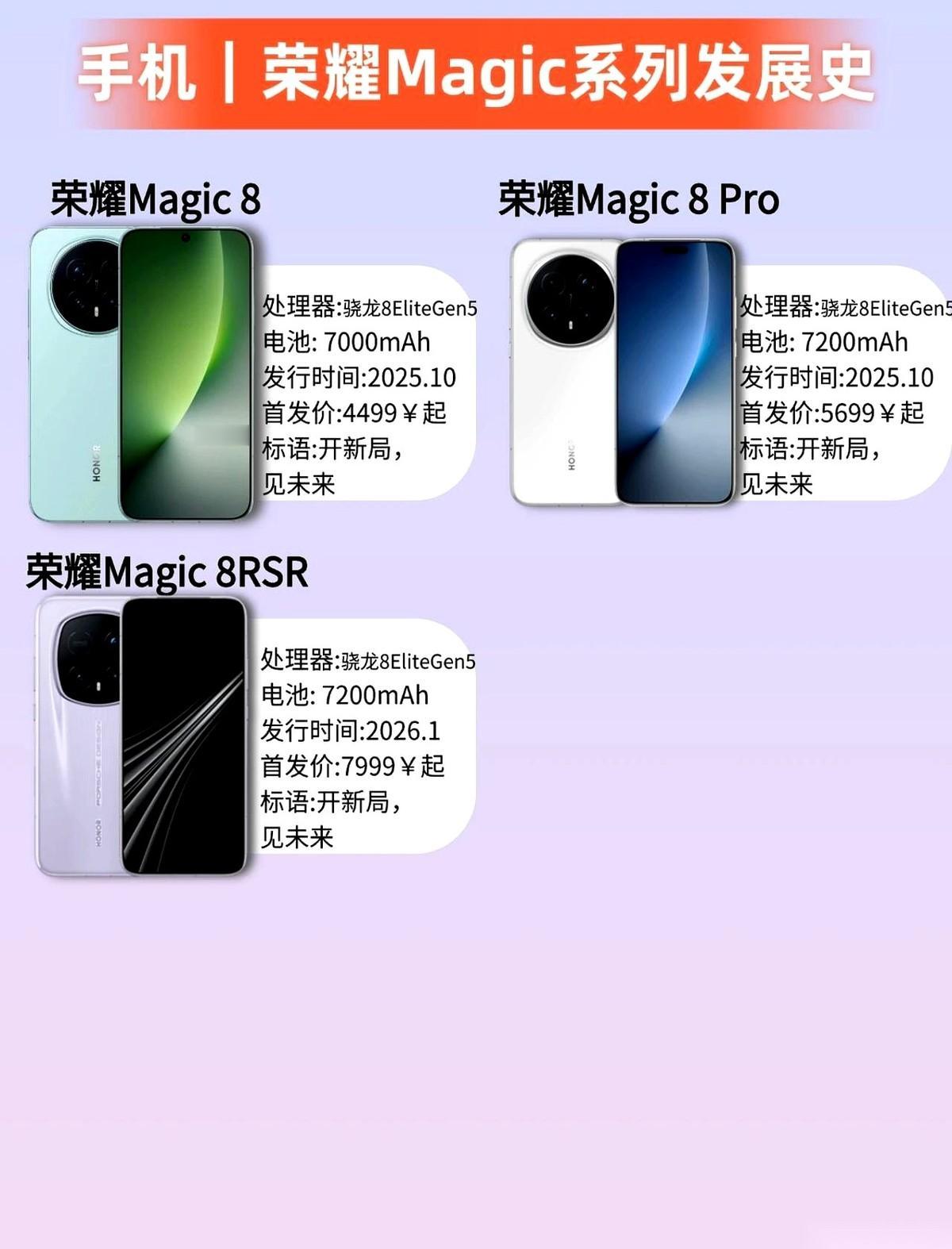 我跟你讲,当我知道一台手机的电池能干到7200毫安时,我脑子里第一反应是:这还有天理吗?这不就是个能打电话的充电宝? 然后一恍神,才想起来,这居然是荣耀Magic。 就是十年前那个,喊着“致未来”,用一块石头一样温润的屏幕,把所有人都看傻了的那个Magic。 时间这东西,真不禁念叨。 当年那个浑身都是理想主义、甚至有点不食人间烟火的“概念机”,怎么一转眼,就变成今天这个一拳头怼在你续航焦虑上的“实用猛兽”了? 这中间的路,想想都觉得带劲。 从一个惊艳的、需要被小心呵护的“艺术品”,到后来那个像“缪斯之眼”一样的大圆环镜头,再到拍照能闭着眼按快门的影像旗舰。 一步一步,它好像越来越“接地气”了。 你发现没?它好像不怎么再提“致未来”了。 因为它开始把那些属于“未来”的东西,比如根本不用在乎的电量,比如顶到头的性能,一样一样,直接塞到了你手里。 说白了,“致未来”听着很酷,但有点虚。 现在的玩法是“开新局”,就是直接把牌桌掀了,告诉你:别等了,未来就是现在这个样。 这可能就是成年人的实在吧。 少说点漂亮的,多干点管用的。
