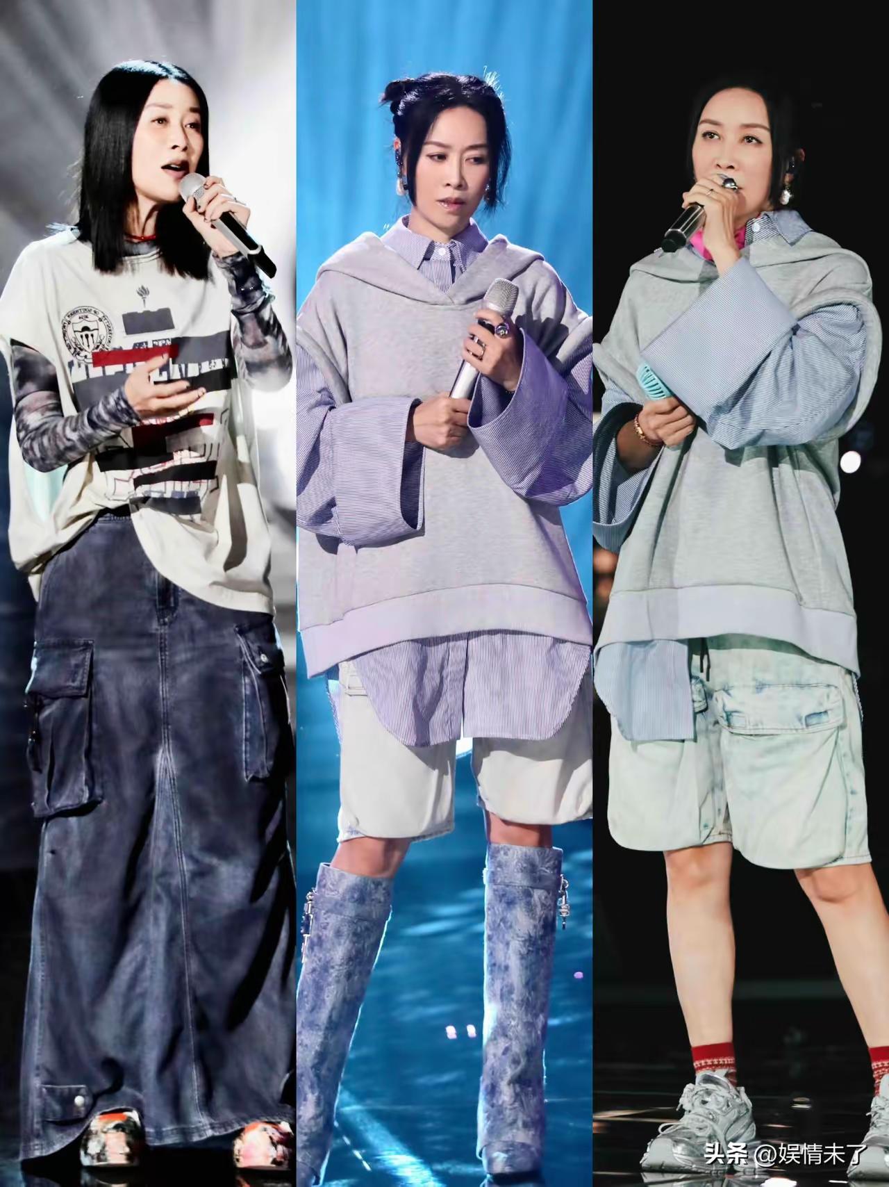 想不到, 那英还有这一手。 论年纪,也不年轻了。 论颜值,真的排不上号。 但是,那姐一出来,衣商真的好高啊! 不管是酷帅,还是休闲, 不管是性感女人,还是学院盐甜, 那英都拿得出手, 且整体氛围感很强,时尚品味非常nice! 怪不得有人说:这种年纪能保持好身材,hold住那么多穿着,真的很难得,而且整体精气神也不错! 我尤其喜欢第一张中间穿着。[大笑]那英 那英情商 那英璀璨之夜