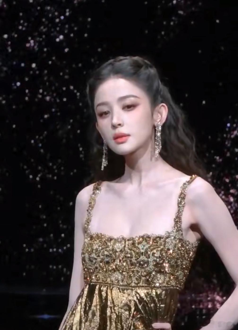 娜扎微博之夜红毯状态好好,金色吊带亮钻裙造型美翻了!