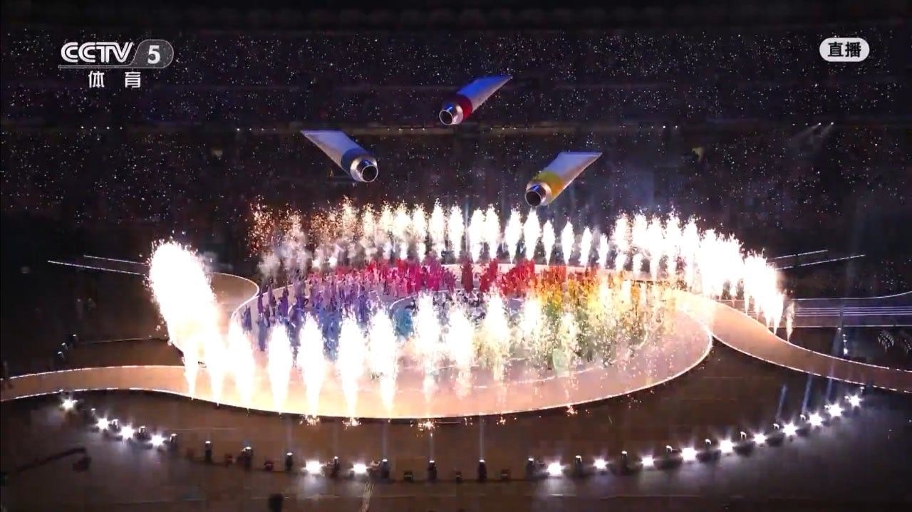 冬奥会开幕式 入场这个原型拱门下挥舞国旗,然后这个步道以田径运动场的形式,结合时