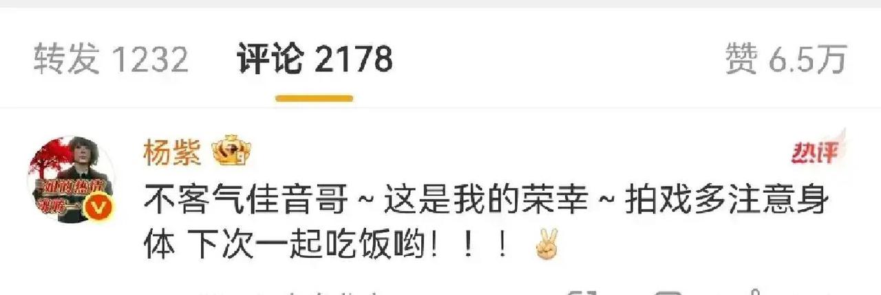 杨紫雷佳音一起拿下微博之夜年度口碑演员,奖杯还是杨紫代领。 雷佳音在横店拍戏走不开,奖杯让杨紫捧回。 杨紫举两座奖杯说荣誉一人一半,雷佳音微博秒回约饭,热搜直接冲前三。 观众口碑奖就该给这种靠作品说话的演员。 不靠流量靠实力,奖杯拿得踏实。