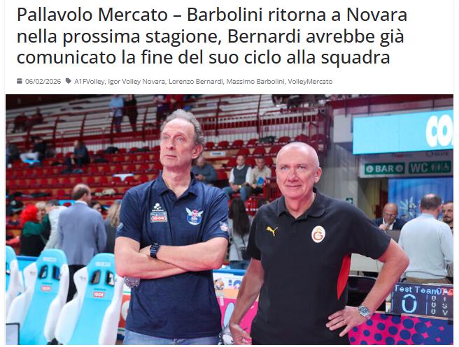 与诺瓦拉闹翻,主教练提前解约:王媛媛之土超加拉塔萨雷现主教练,也是朱婷意甲旧东家斯坎迪奇主教练的巴博里尼下赛季执教意甲本赛季失意的诺瓦拉 意媒:巴博里尼将在下赛季重返诺瓦拉,贝尔纳迪已向球队宣布提前将结束他的任期 马西莫·巴尔博里尼正准备在 2026-27 赛季重新执掌诺瓦拉队。正如记者戴维德罗马尼在意大利 gazzetta 上报道,这位摩德纳籍教练在休斯顿和加拉塔萨雷度过两年的海外生涯后,预计将重返意大利。对于这家皮埃蒙特俱乐部来说,这将是一场显赫的回归:巴尔博里尼曾在 2017-2019 年间执教该队,期间赢得了一次欧冠、两次意大利杯和一次意大利超级杯。 转折出现在最近几小时,主教练洛伦佐·贝纳尔迪已向团队宣布,他在诺瓦拉的任期将在本赛季结束时告一段落(原因据说是与俱乐部管理层的不合,我们上周提到过)。 为了再次加入诺瓦拉,巴博里尼放弃了已签署加盟美国 LOVB 洛杉矶的协议。这一操作同样对国家队产生影响。尽管他已确认将加入国家队主教练朱利奥·贝拉科的夏季团队,但他的工作将仅集中在重大赛事如欧洲锦标赛。 根据达维德·罗马尼在《玫瑰报》在线版的报道,为了平衡工作负荷,瓦莱里奥·里奥内蒂可能会引入诺瓦拉,他有执教马切拉塔的经历,此前曾在科内利亚诺担任主教练丹尼埃洛·桑塔雷利的副手。 来源:电子排球杂志