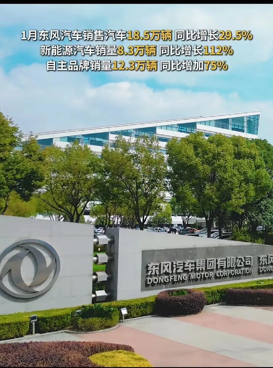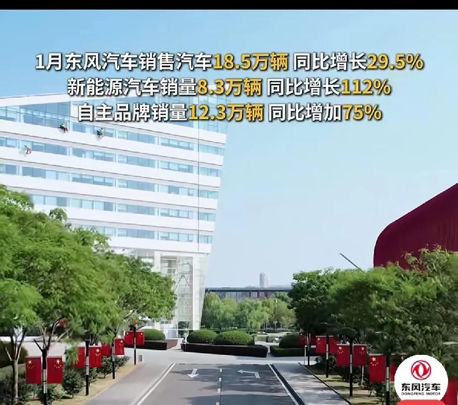 东风公司1月销售汽车18.5万辆,同增29.5%;其中,新能源汽车销量8.3万辆