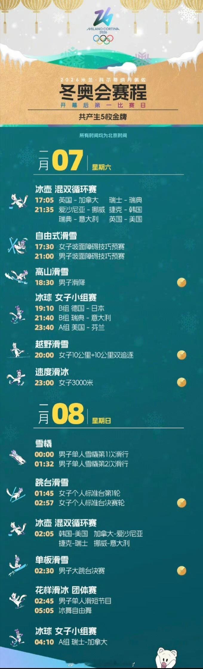 谷爱凌米兰冬奥会首秀来了⏰北京时间7日下午,米兰冬奥会将迎来首个金牌日,共产生5枚金牌。谷爱凌将在自由式女子坡面障碍技巧预赛中迎来米兰冬奥会首秀而苏翊鸣将参加单板滑雪男子大跳台决赛的争夺。🇨🇳中国队加油⛽苏翊鸣大跳台决赛新主推话题,老师们可带