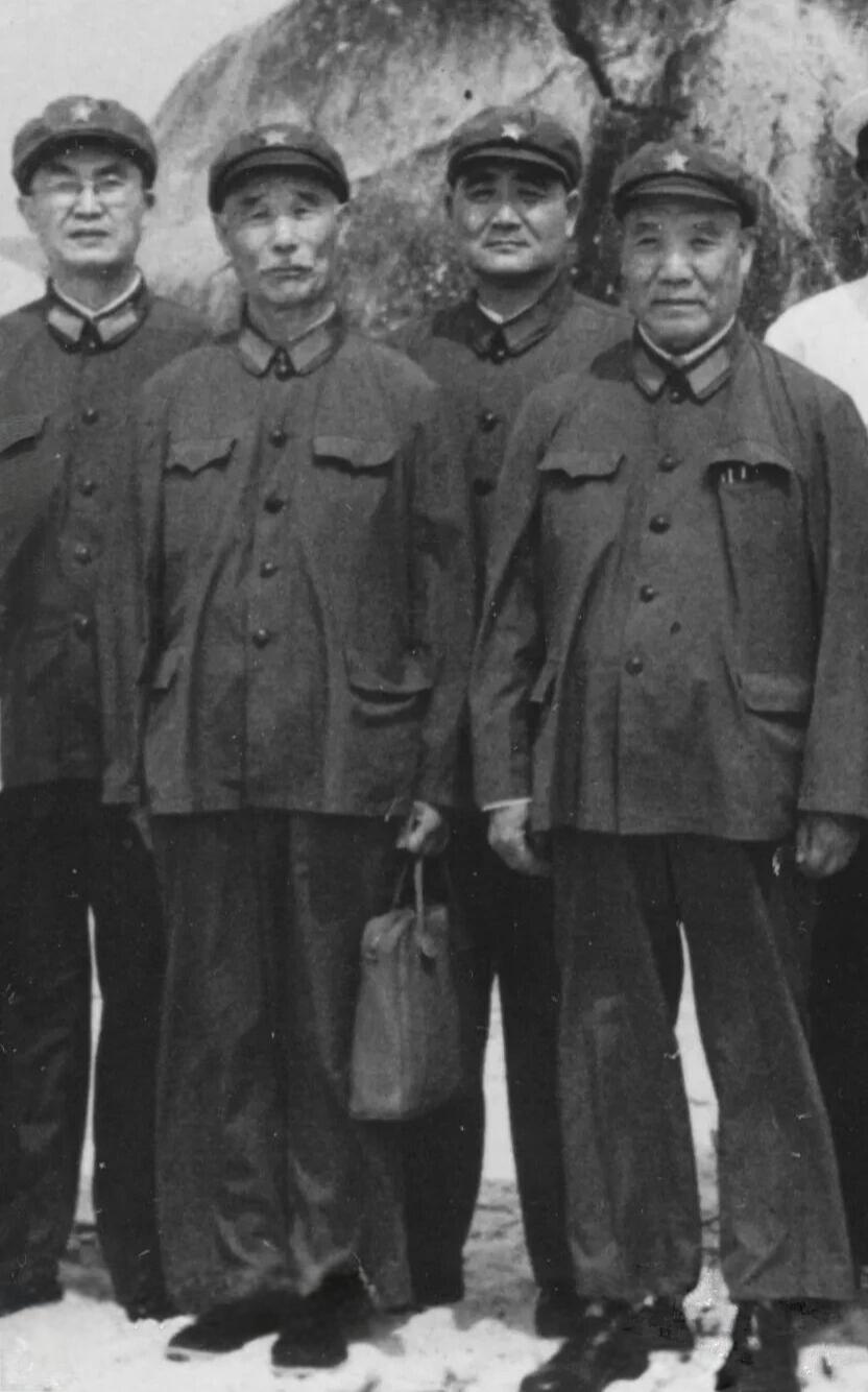 1978年,时任总参谋部顾问的孙毅中将(左二)下部队视察工作,竟自己提着包包。不愧是宁都起义走出的老红军啊!