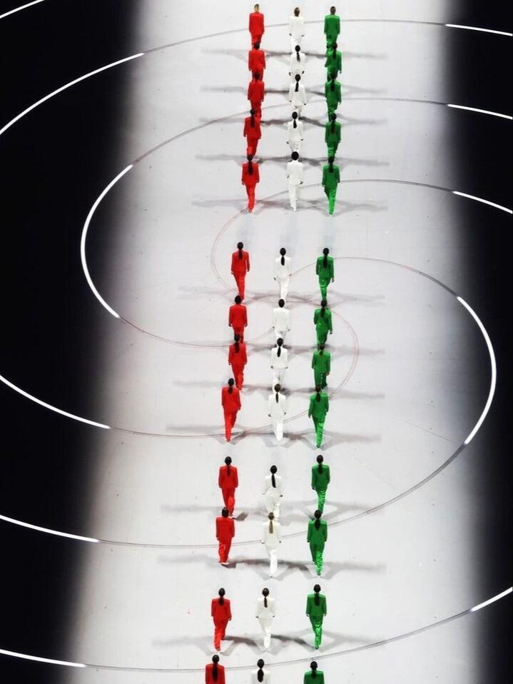 意大利代表团身穿Armani套装致敬去世的Armani老爷子。冬奥会开幕式