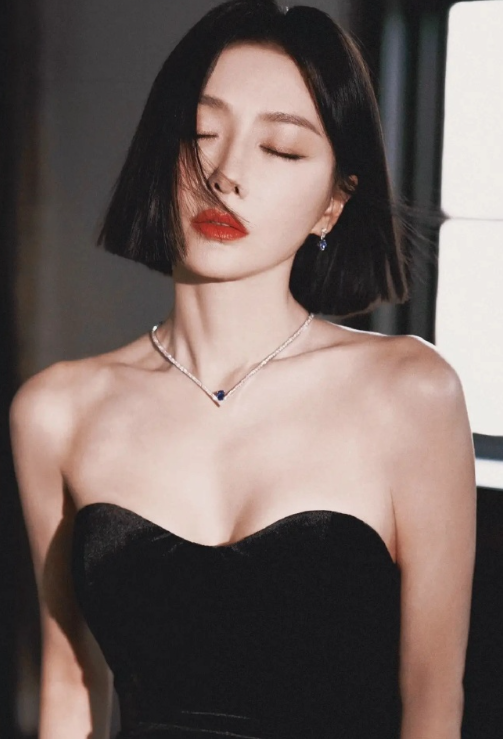 秦岚黑丝绒礼裙造型封神