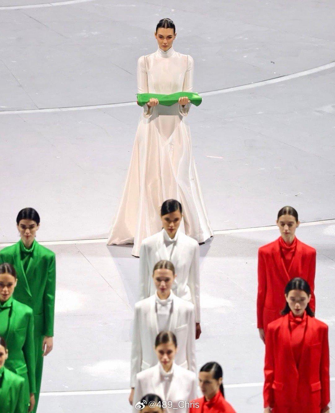 开幕式上交接国旗的超模是小李子女友 米兰开幕式上交接国旗的超模Vittoria Ceretti是小李子女友。