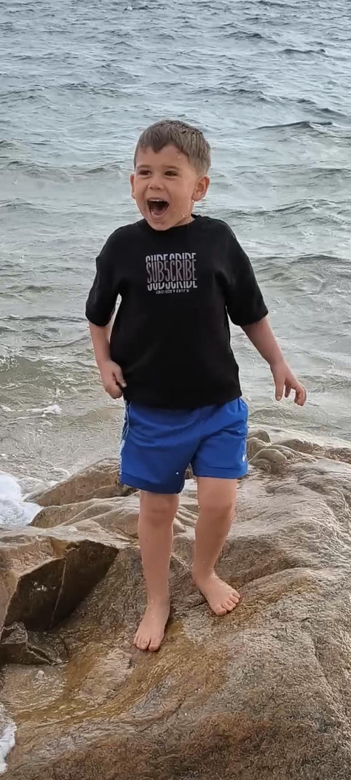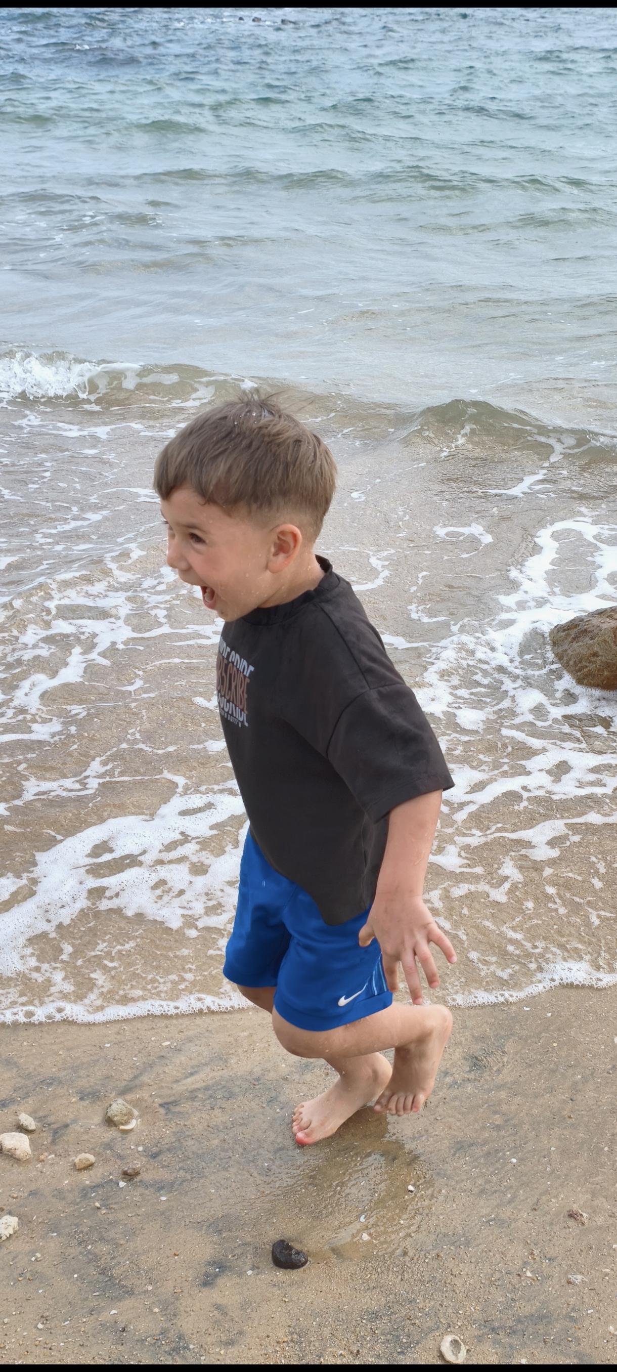 我在海边抓拍到的一外国小男孩,他当时被海浪惊吓到了,那表情和动作,很可爱。看样子