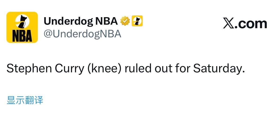 库里因膝盖伤势确定缺席与湖人的比赛。勇士vs湖人