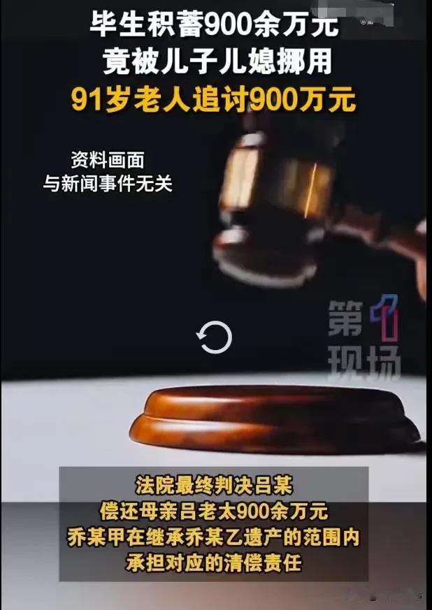 广东深圳,91岁的老太,无法管理900多万,就把这些钱给儿子保管,儿子和儿媳就用这笔钱用来还房贷,用来吃喝玩乐,儿媳生病去世了,她还将300万的存款,和房子的一半份额,让姐姐继承,老太知道后,非常气愤,就起诉儿子和儿媳的姐姐,要求返还这900多万。 91岁的老太,她年纪大了,不但行动不便,常常会健忘,下一秒可能就会忘记上一秒的事情,她意识到自己真的老了,人老不由自己。 这个时候她唯一烦恼的就是,她那900多万的积蓄,那是她毕生的积蓄,那是她年轻的时候,打拼攒下来的,是她一生的心血,这笔钱更是她晚年的底气。 但这笔钱,如果她管理不好,稍有不慎,就有可能被自己花了,她多少担心,自己年纪大了,做事糊涂,她考虑了很久,终于决定,要将这笔钱给儿子管理,毕竟儿子是自己亲生的,自己百年之后,这笔钱也是要给儿子的。 现在给儿子保管,儿子还能给她养老送终,有了这笔钱,她也不用担心自己的晚年没有着落。 就这样,她把这笔钱给了儿子保管,可她不知道,这笔钱给了儿子,差点这笔钱就成了外人的了。 她没有想过,这笔钱到了儿子手里,儿子和儿媳居然马上就用这笔钱来还房贷,还了房贷,还拿钱来装修,甚至还拿这笔钱来吃喝玩乐。 如果这笔钱全都是儿子跟儿媳花了,生活越过越好,作为母亲,她也就不计较这么多了,毕竟她一把年纪,拿着这笔钱也享用不了多少天,只要儿媳儿子的生活过好了,这笔钱也是物有所值。 让她万万没有想到的是,儿媳生病离世,居然立下遗嘱,要将已经还完房贷的房子的一半份额,以及300多万的存款,留给姐姐继承。 真是太贪得无厌了,儿媳的这个做法,让她难以接受,老太是真的没有想到,儿媳居然到死都没有把婆家人当家人,到了最后还要拿婆家的财产补贴娘家,她心里真的气不过。 如果这笔钱是儿媳自己挣的,她要给谁,老太都没有意见,可这笔钱是老太毕生的积蓄,是她留给自己养老的,也是她百年之后,想留给儿子用的,这笔钱就算是儿子挥霍了,也不应该由儿媳的娘家人来继承。 老太是在2024年的时候,才发现这笔钱被别人用了,一大部分还差点成了外人的,她非常的震撼,对着儿子,她怒其不争,对着儿媳,她怒其贪得无厌。 这笔钱是她辛辛苦苦攒下来的,她也终于意识到,这笔钱再给儿子保管下去,将会一分不剩,儿子太不争气了。 儿子眼睁睁地看着300万和房子的一半份额,成了妻子的姐姐的钱,儿子可以视而不见,可以不当一回事,但老太不愿意。 于是老太太就起诉儿子和儿媳的姐姐,要求返还这900余元。 不过儿媳的姐姐认为,这笔钱是老太给予儿子儿媳的赠与,后来一部分财产成了儿媳的遗产, 儿媳愿意给谁继承,谁就可以继承,她认为自己不需要担责任。 但老太太起诉的诉求是,这笔钱是给儿子保管的,儿子无权使用,儿媳更无权使用,这根本就不是儿媳的遗产,她怎么能够给别人继承呢? 如果这笔钱,确实是老太给儿子保管的,那么儿子和儿媳确实不能使用这笔钱。 保管不代表着,拥有这笔钱就可以使用这笔钱,老太随时可以让儿子返还这笔钱。 《刑法》第270条规定:将代为保管的他人财物非法占为己有或将他人的遗忘物或者埋藏物非法占为己有,数额较大且拒不交出的,可能会面临二年以下有期徒刑、拘役或者罚金;如果数额巨大或者有其他严重情节的,则可能面临二年以上五年以下有期徒刑,并处罚金。 因此儿媳离世之后,不能将这笔钱作为自己的遗产,给自己的娘家人继承。 那么你对这个儿媳的做法有何看法呢?