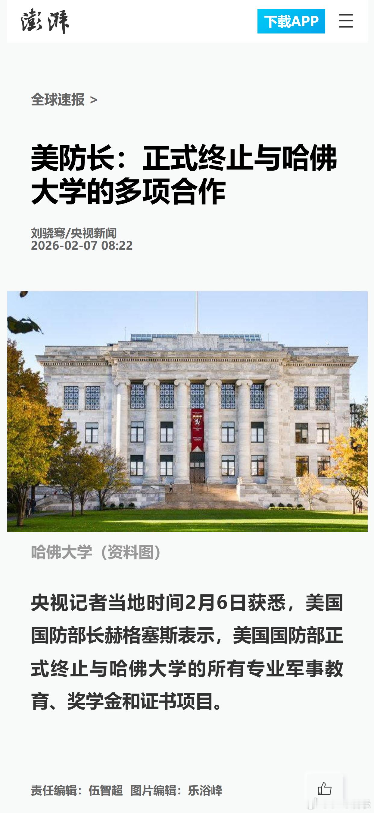 美防长:正式终止与哈佛大学的多项合作