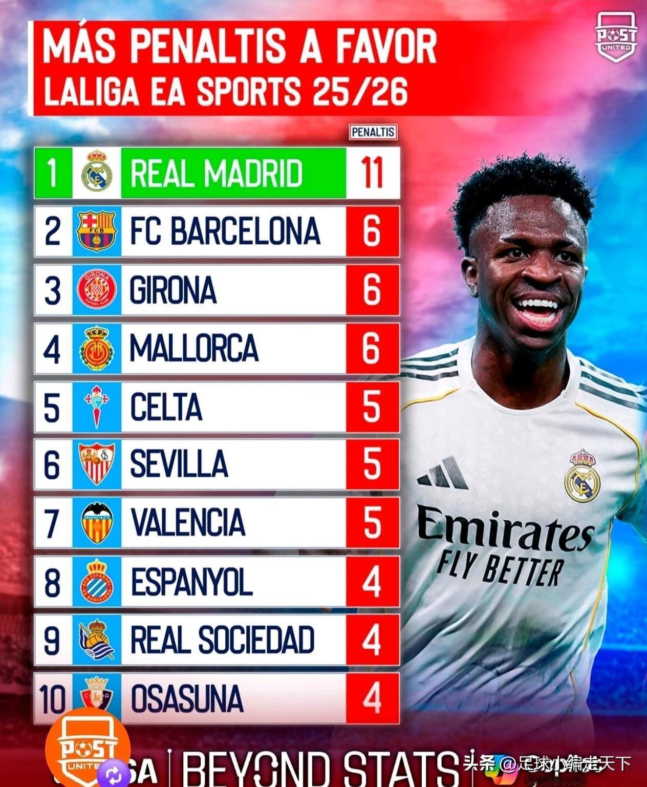 突然发现皇马本赛季点球数量惊人啊!22场西甲比赛一共获得11个点球,平均两场一个点。 真不敢想皇马这赛季要是没有这些点球,那积分会落后巴萨多少分啊。 而且近5个赛季都是一直遥遥领先,最有争议的是很多都是关键点球。 尤其越到最后时刻疯狂往禁区里跳,所以踢皇马的球队越到最后越是要小心禁区内的犯规,千万不能给裁判吹点球的机会。