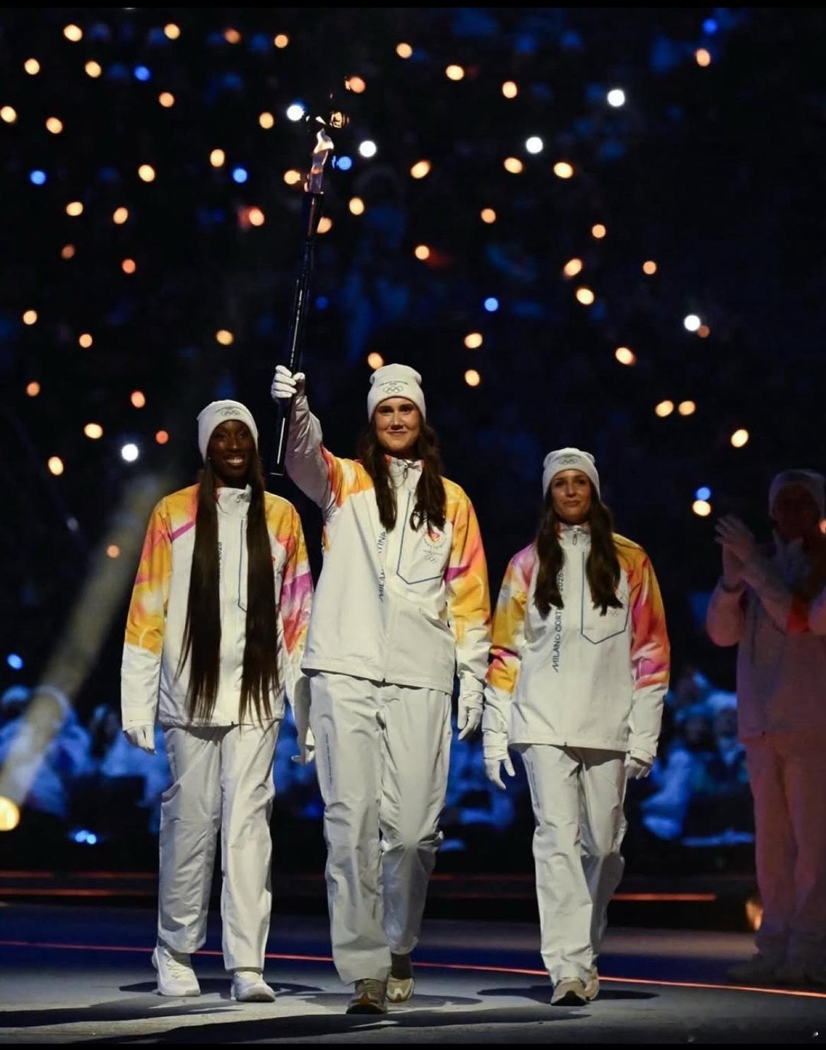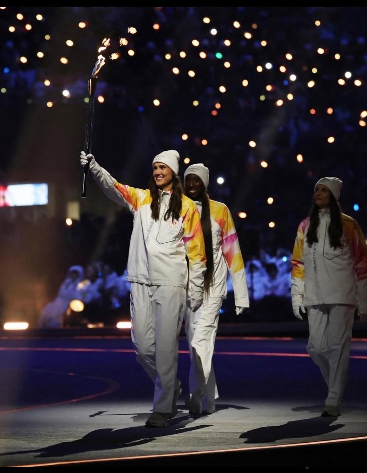 冬奥加油世界女排新闻v观冬奥会 意大利女排国家队队长达内西率领艾格努和坎比在米兰冬奥会主会场传递火炬,男排詹内利等人也参与传递,这是一份超级大的荣誉!